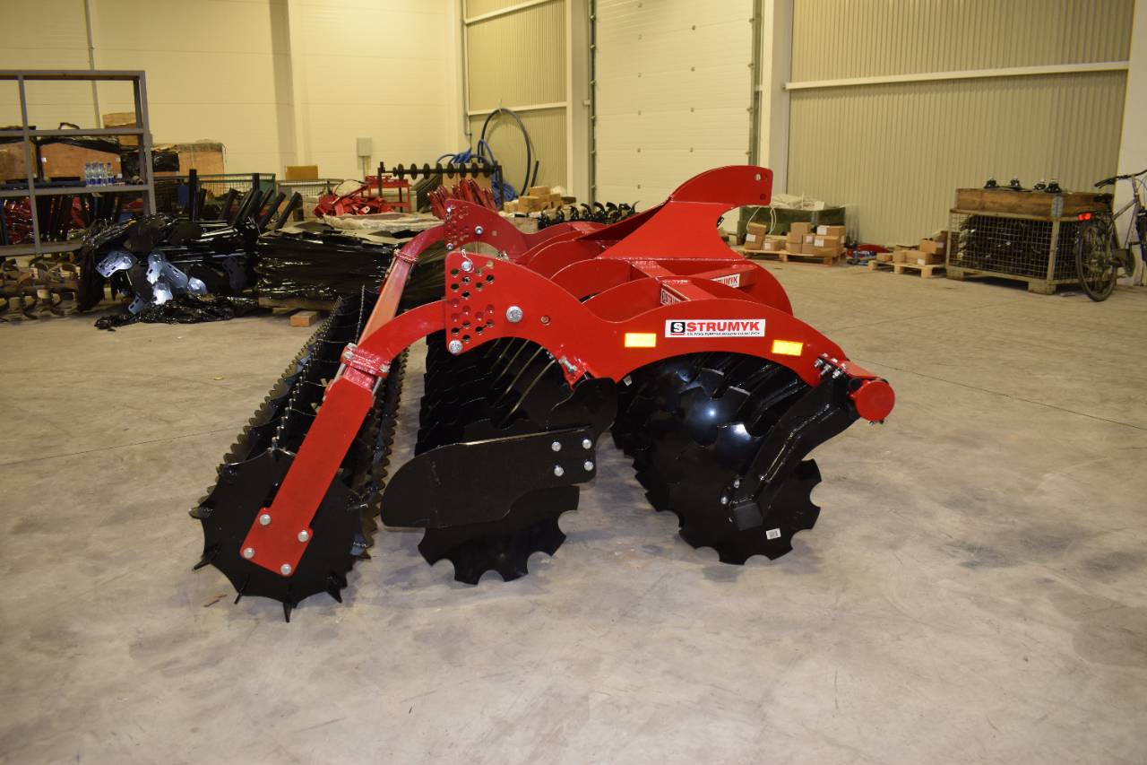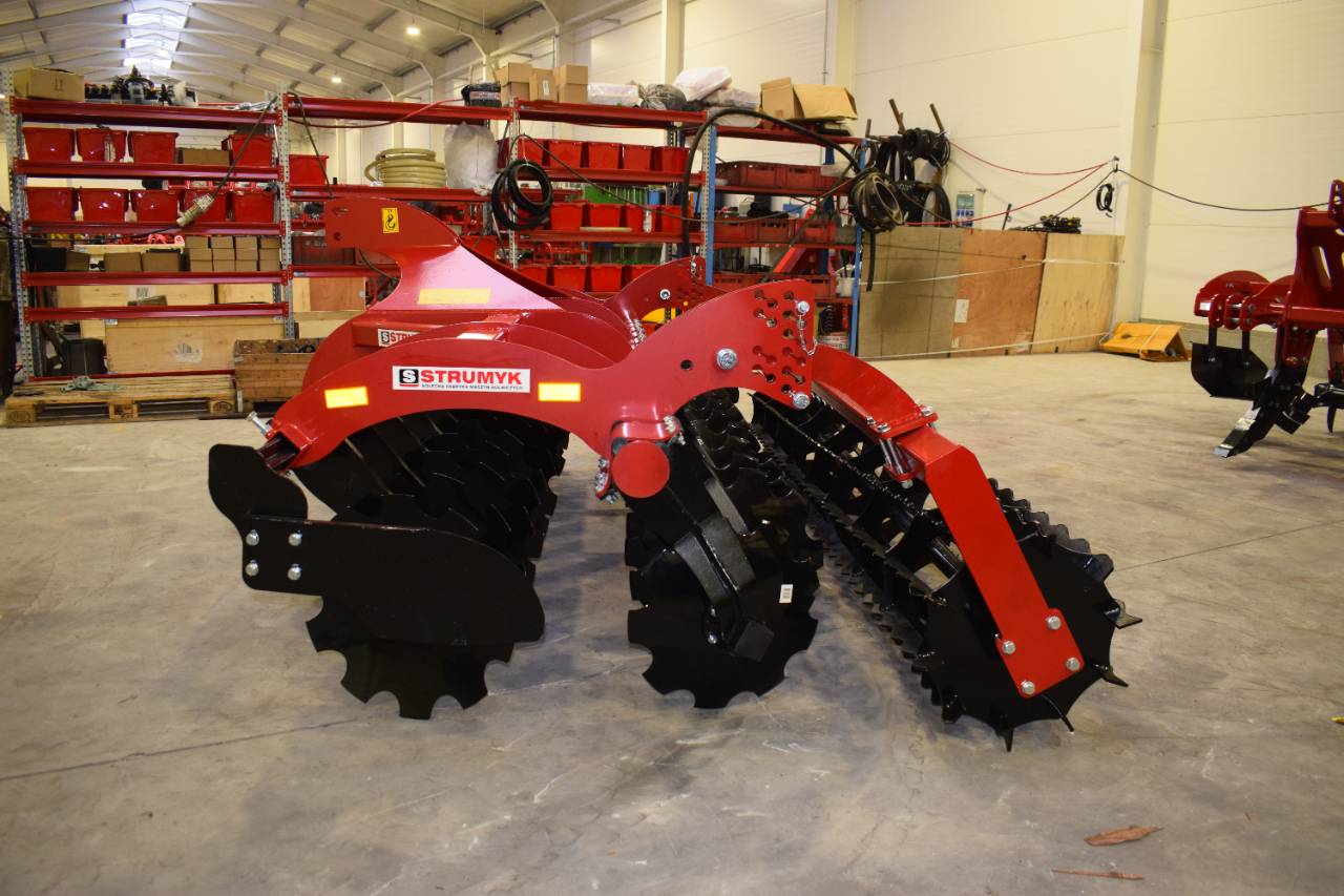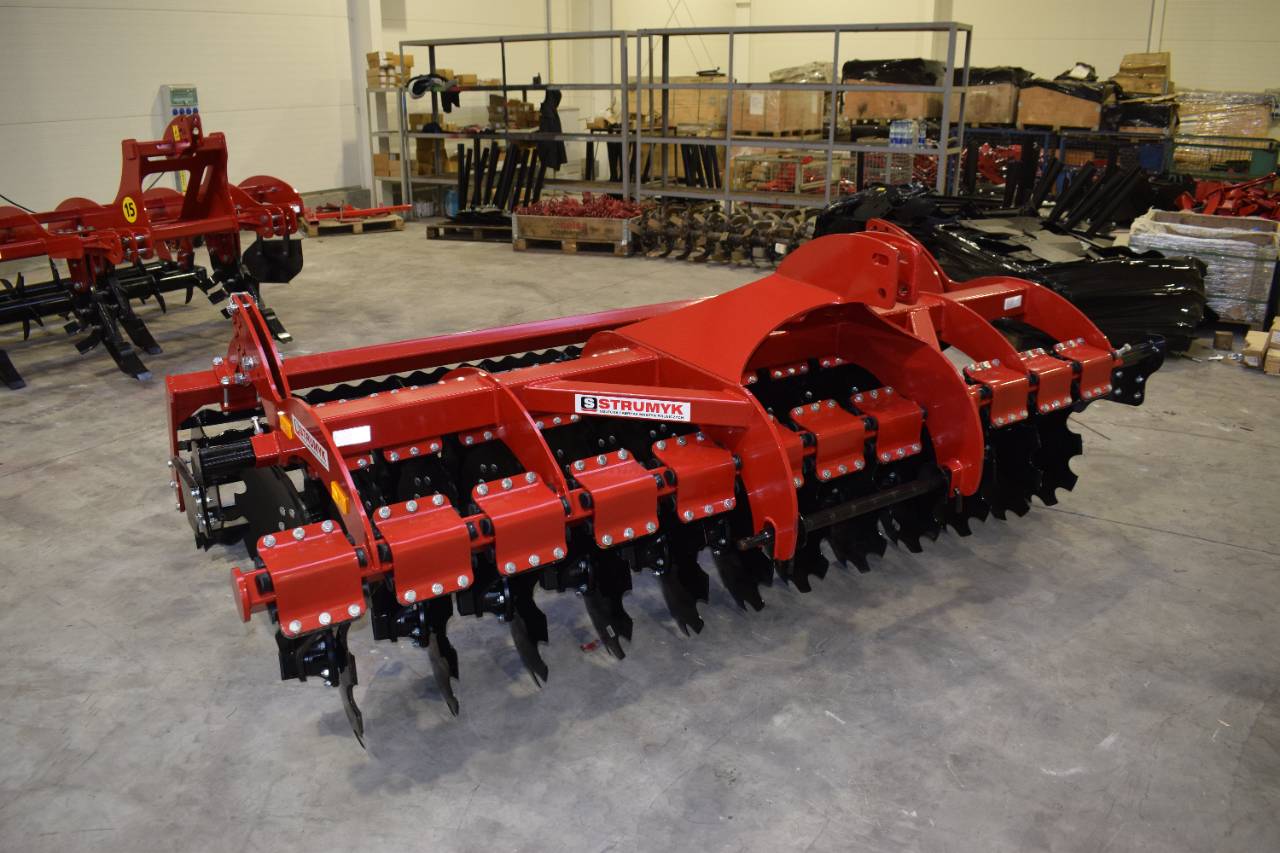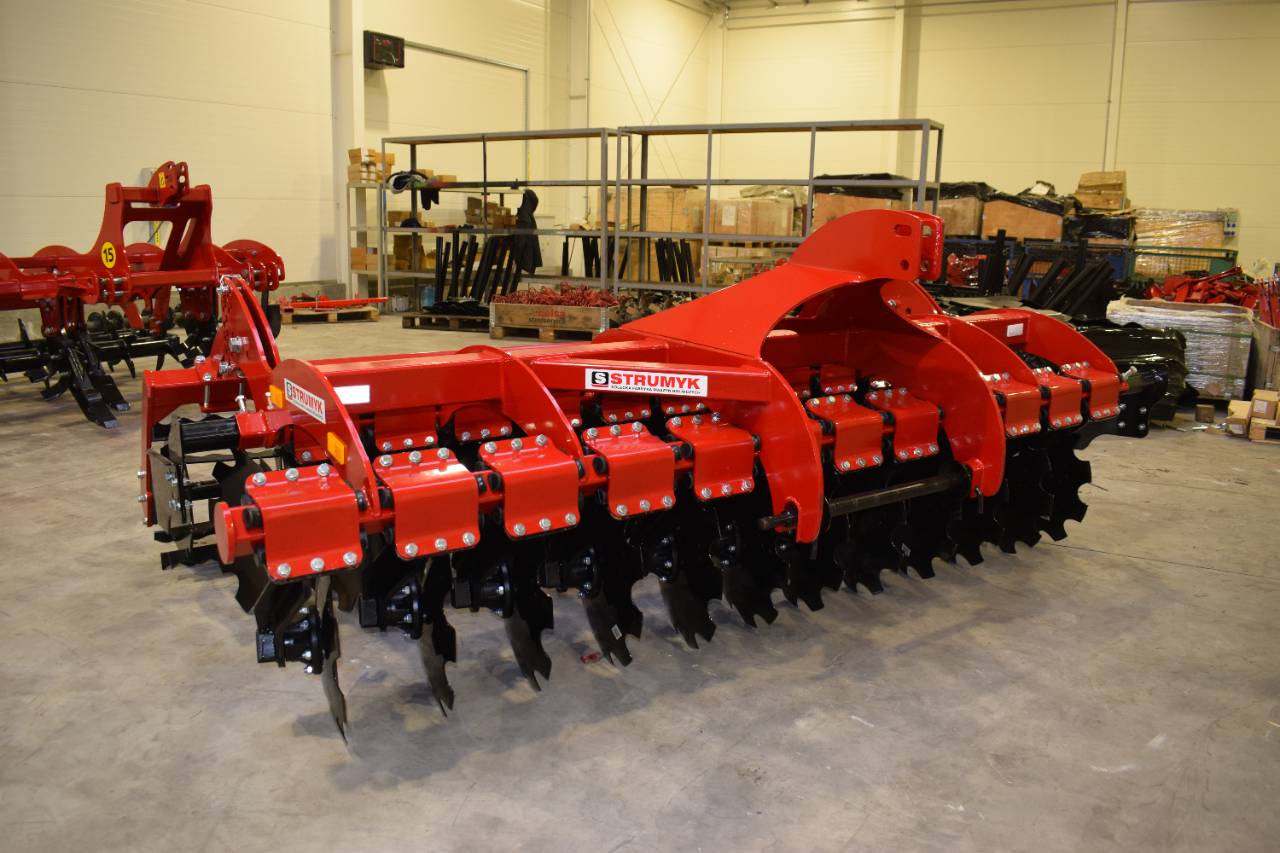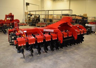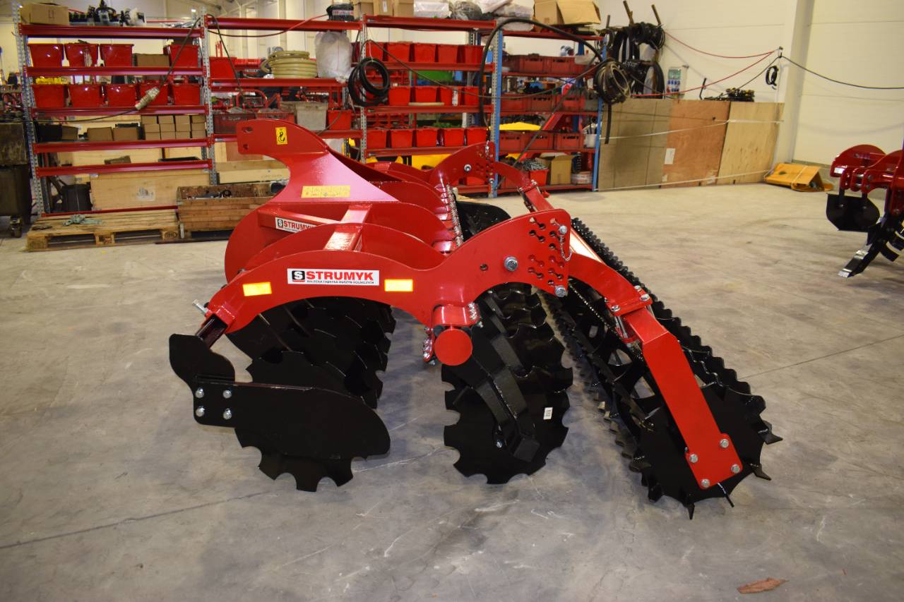 The shock-absorption system, which uses rubber rollers, improves working comfort and protects the working parts from overload. The precise disc spacing ensures that crop residues are mixed evenly and the soil is thoroughly loosened.