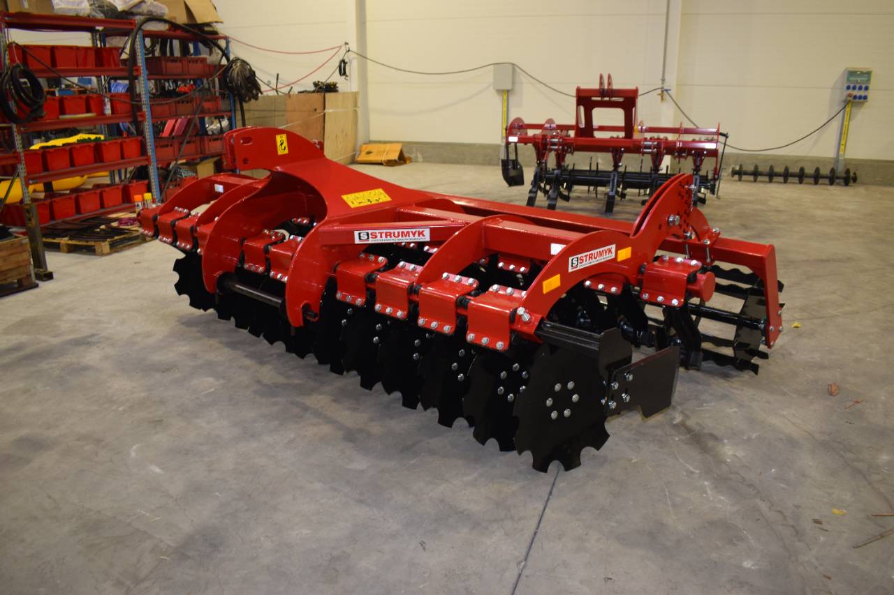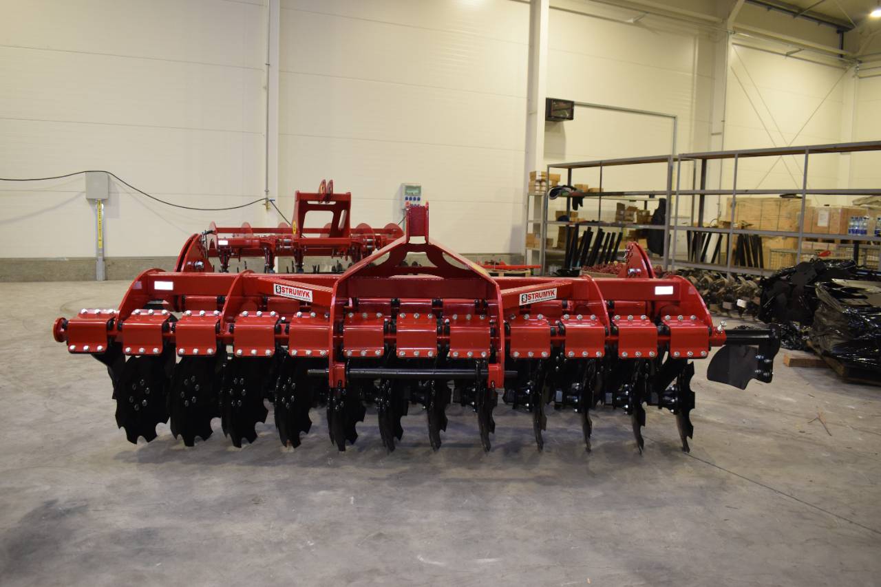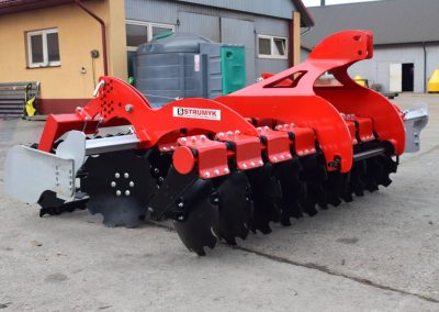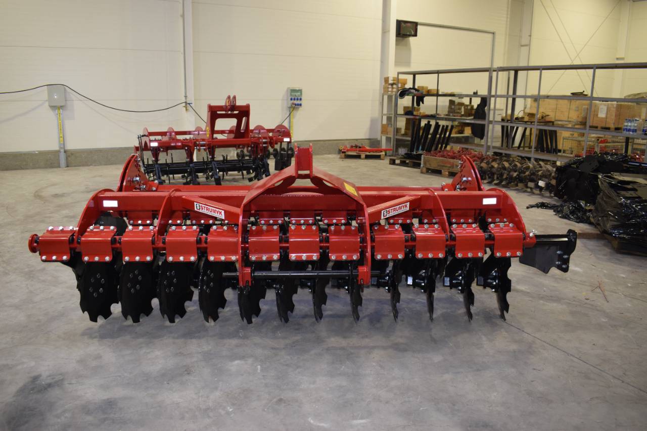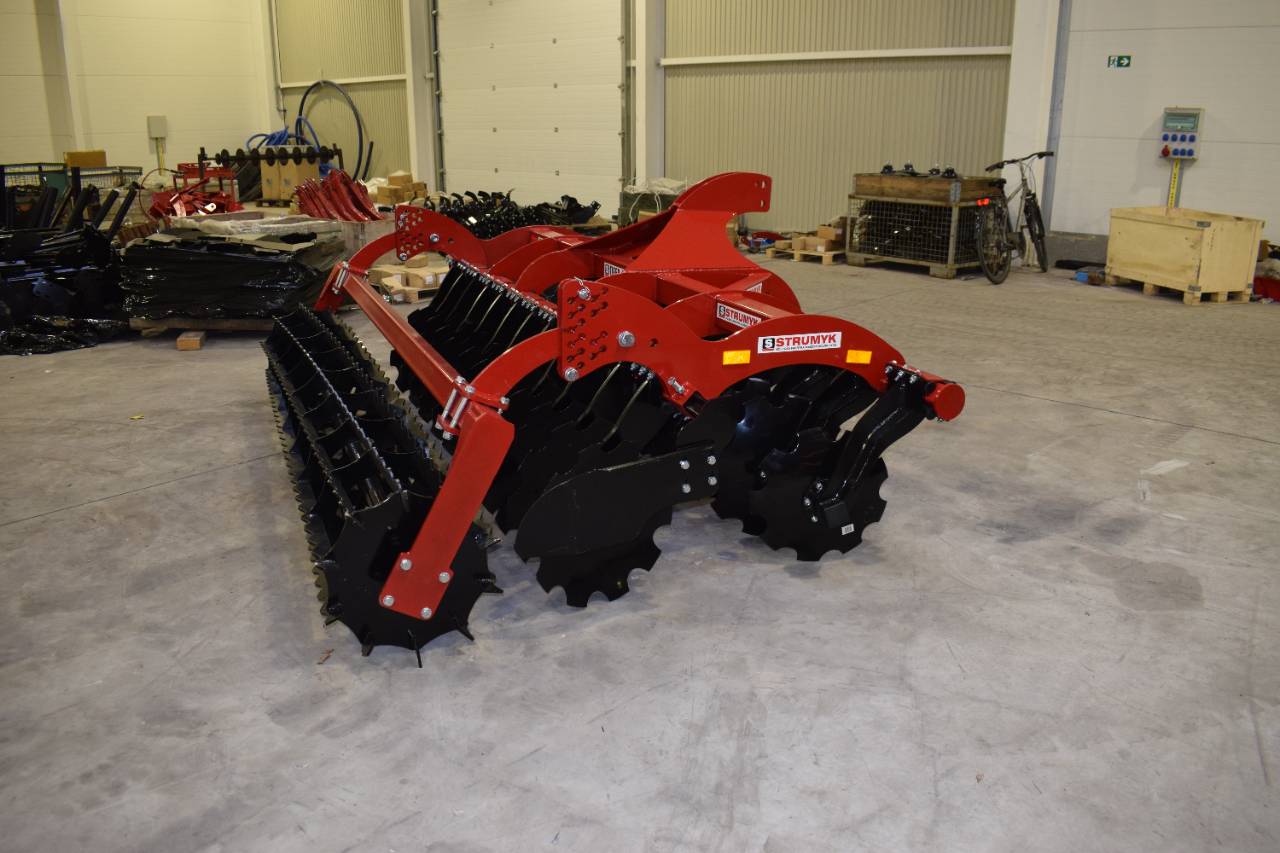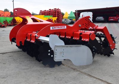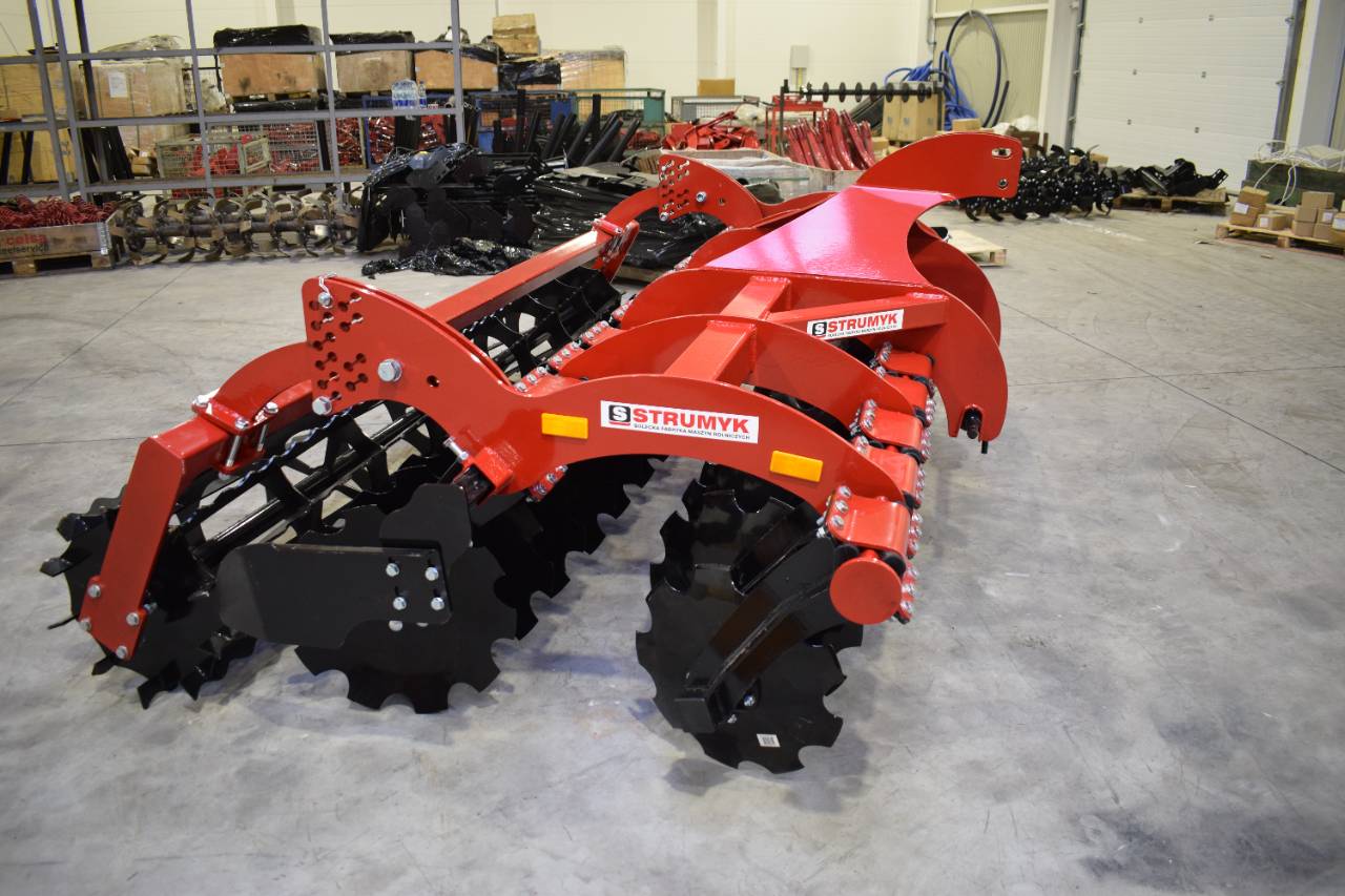 The shock-absorption system, which uses rubber rollers, improves working comfort and protects the working parts from overload. The precise disc spacing ensures that crop residues are mixed evenly and the soil is thoroughly loosened.