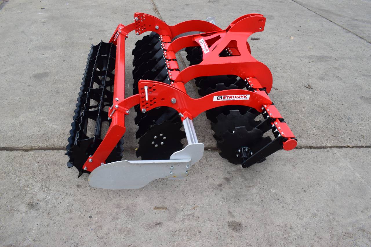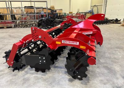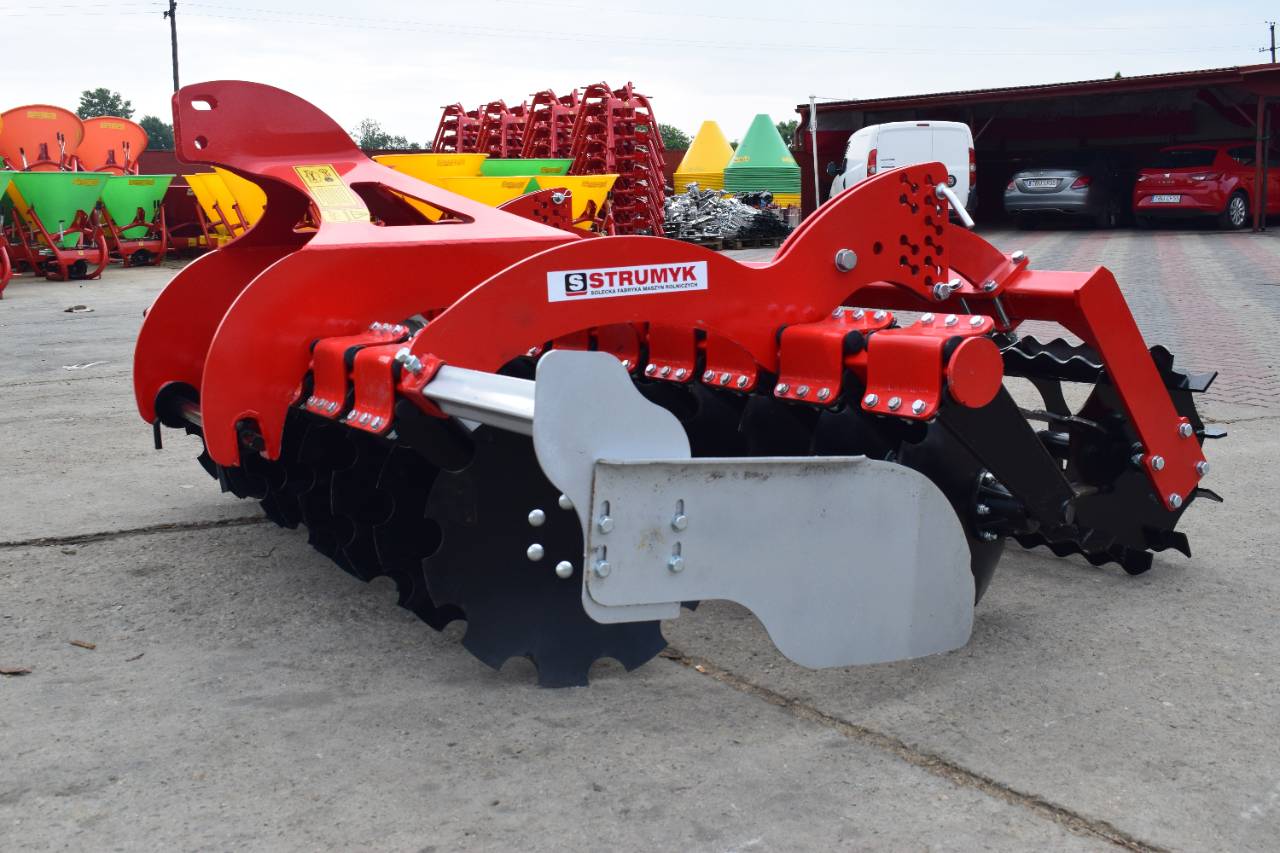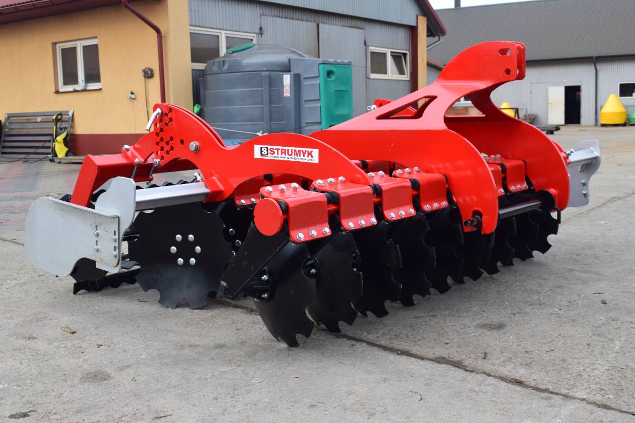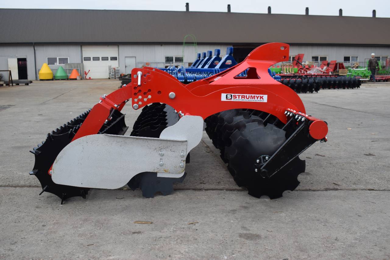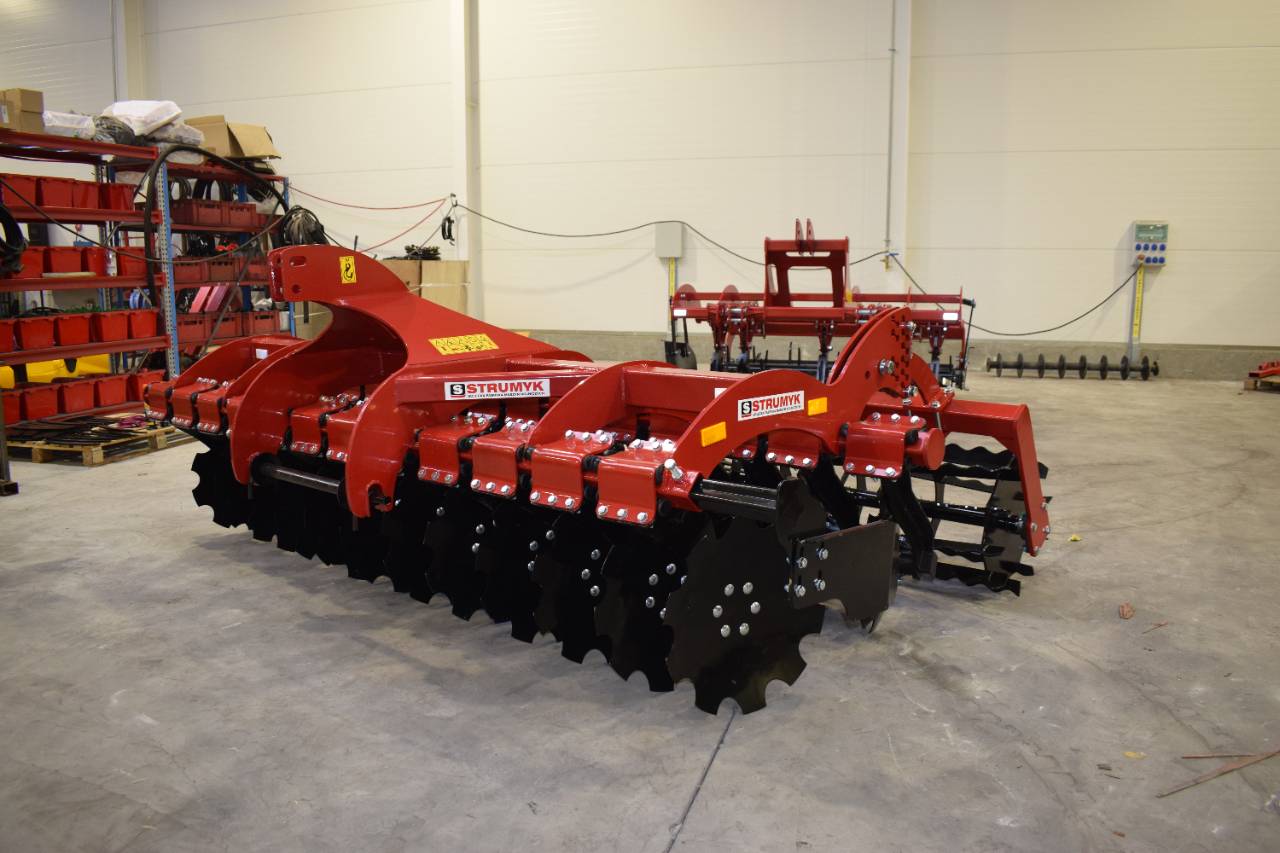 The shock-absorption system, which uses rubber rollers, improves working comfort and protects the working parts from overload. The precise disc spacing ensures that crop residues are mixed evenly and the soil is thoroughly loosened.
