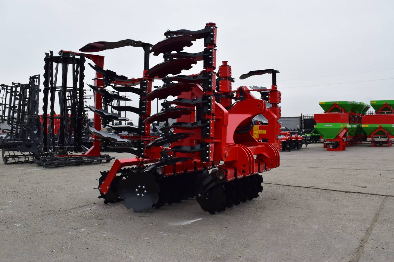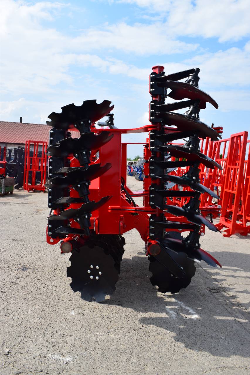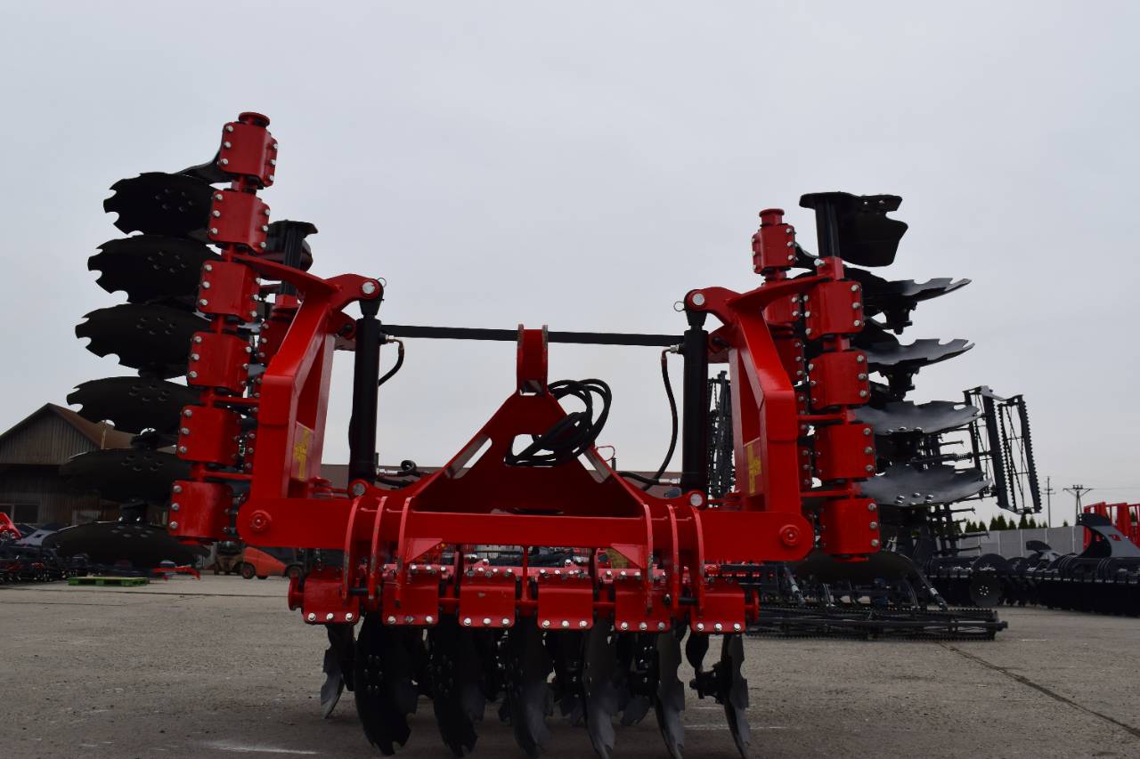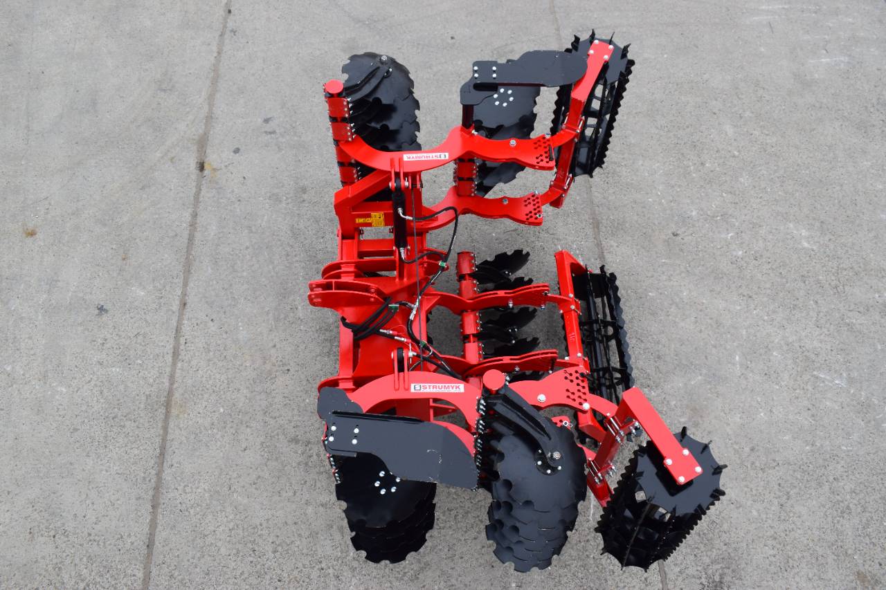 Компактная конструкция с гидравлическим складыванием обеспечивает удобство транспортировки и эффективную работу на больших рабочих ширинах. Усиленная рама и диски из бористой стали обеспечивают эффективное перемешивание пожнивных остатков и интенсивную обработку почвы.