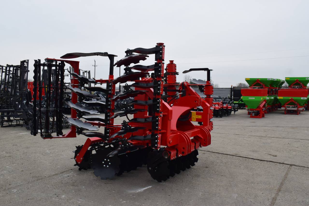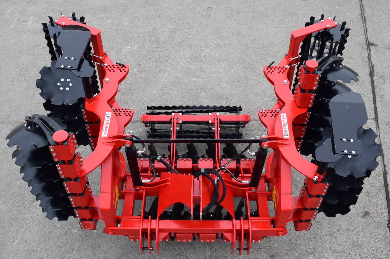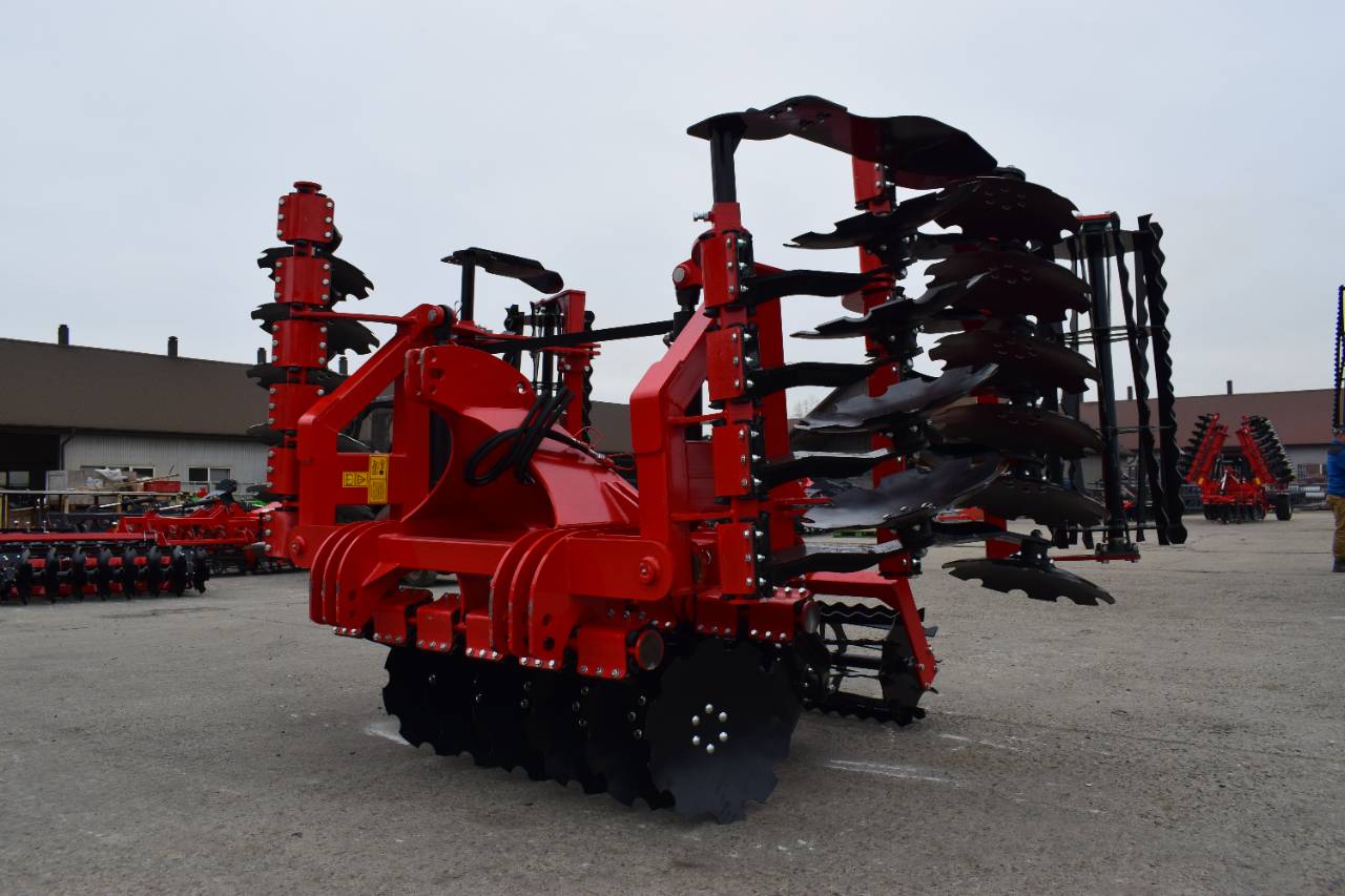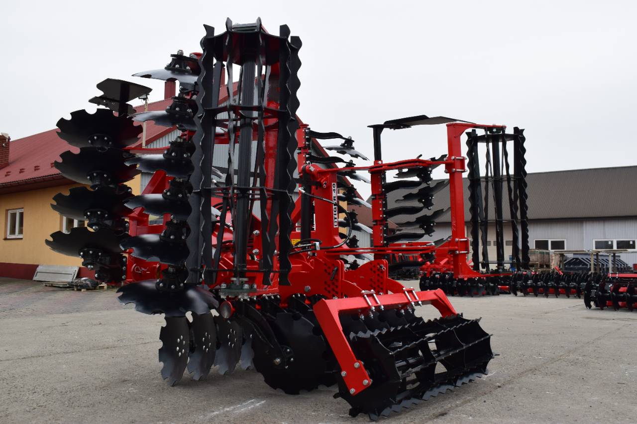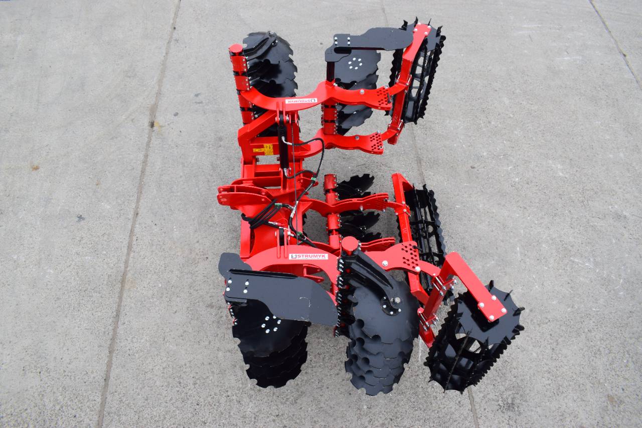 Компактная конструкция с гидравлическим складыванием обеспечивает удобство транспортировки и эффективную работу на больших рабочих ширинах. Усиленная рама и диски из бористой стали обеспечивают эффективное перемешивание пожнивных остатков и интенсивную обработку почвы.