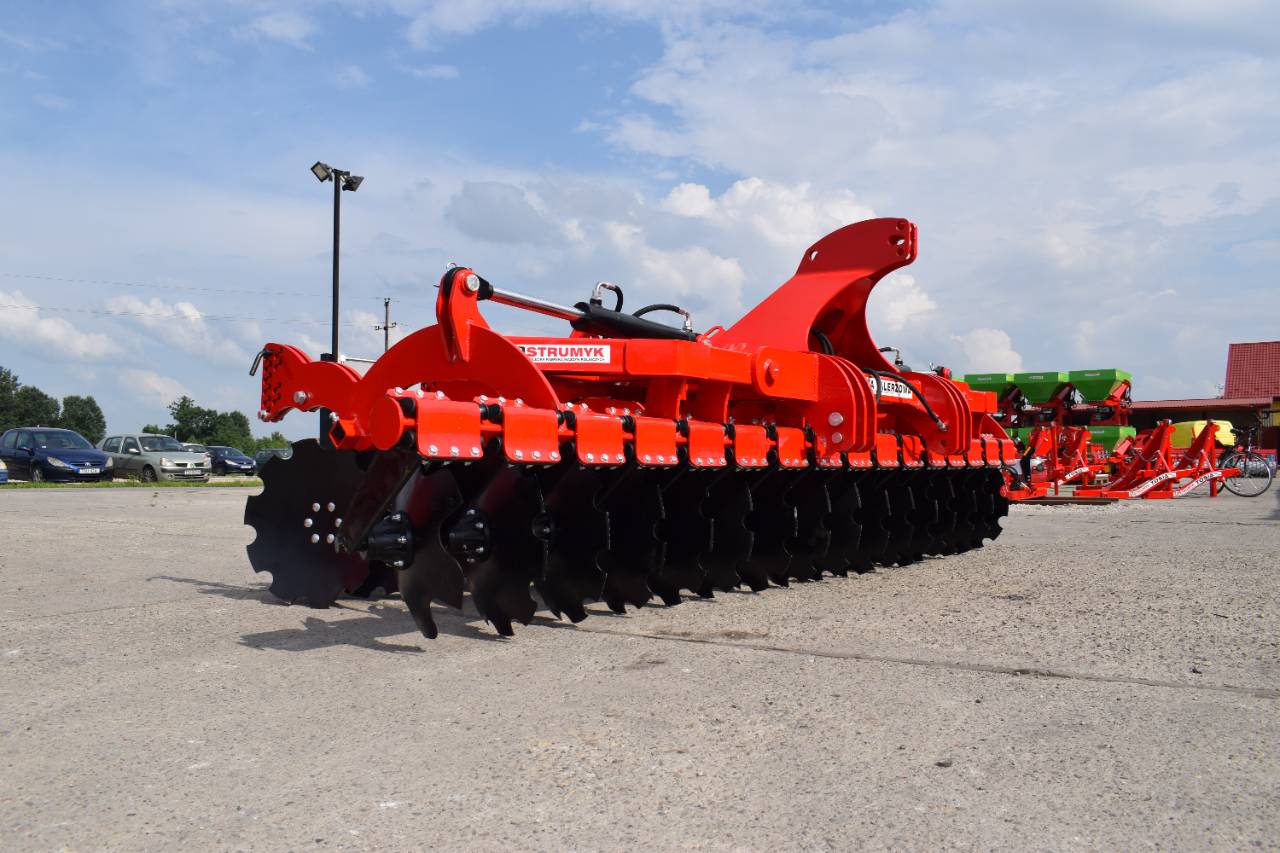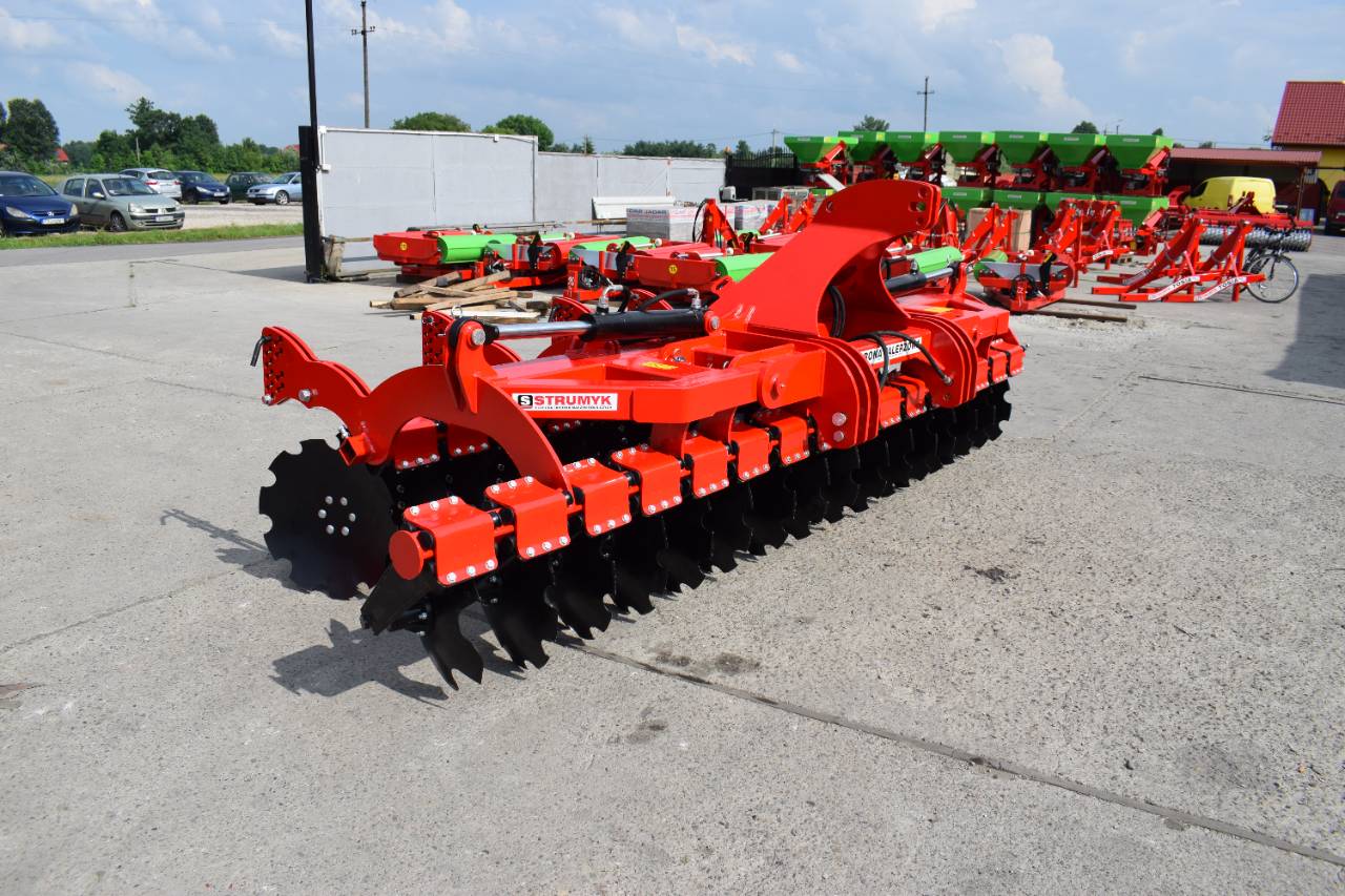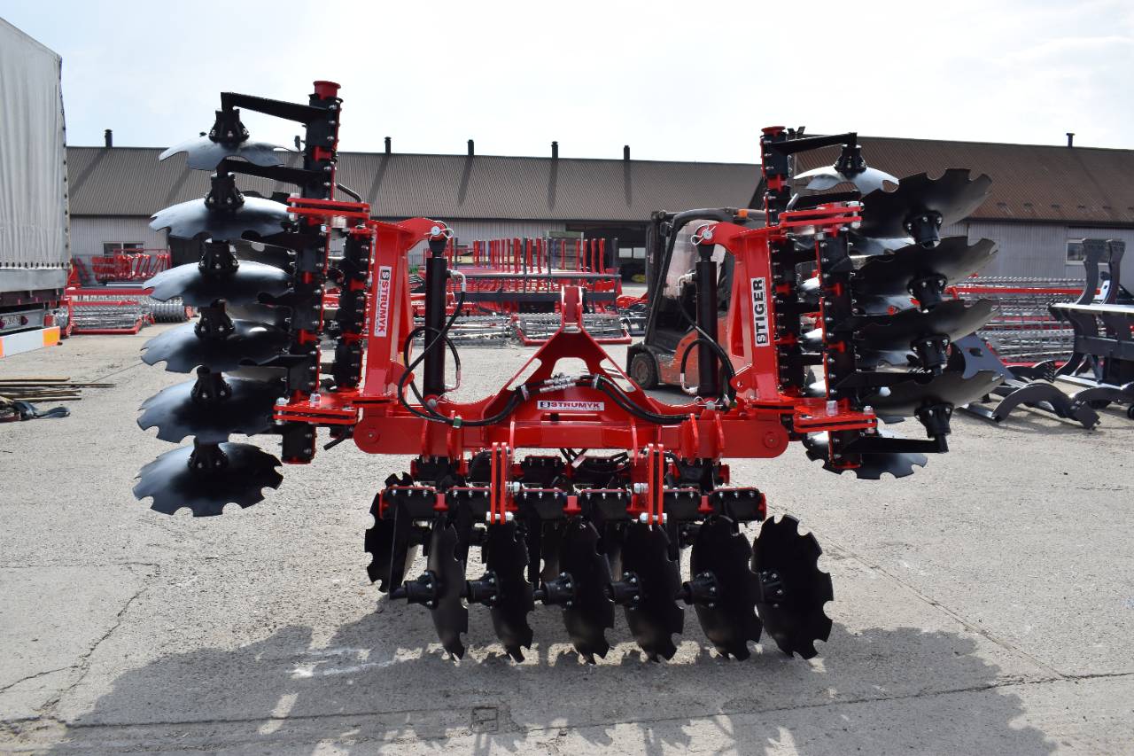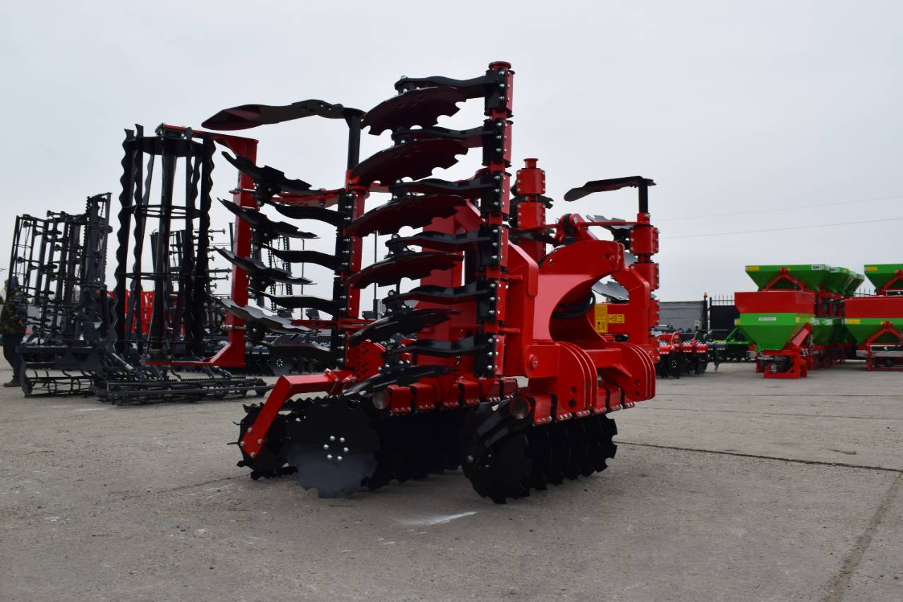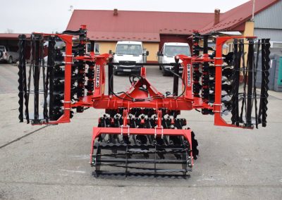 Компактная конструкция с гидравлическим складыванием обеспечивает удобство транспортировки и эффективную работу на больших рабочих ширинах. Усиленная рама и диски из бористой стали обеспечивают эффективное перемешивание пожнивных остатков и интенсивную обработку почвы.