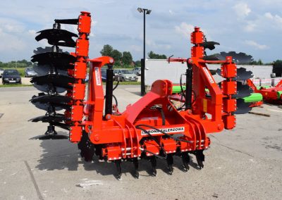 Система амортизации на основе резиновых валиков повышает стабильность работы и защищает рабочие элементы от перегрузок, обеспечивая равномерный эффект по всей рабочей ширине. Точное расстояние между дисками способствует тщательной обработке почвы.