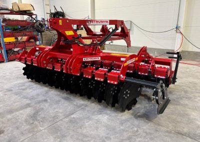 Zwarta konstrukcja agregatu umożliwia intensywną uprawę gleby przy zachowaniu stabilnej pracy nawet na większych szerokościach roboczych. Talerze ze stali borowej skutecznie mieszają resztki pożniwne, zapewniając równomierny efekt na całej szerokości roboczej.