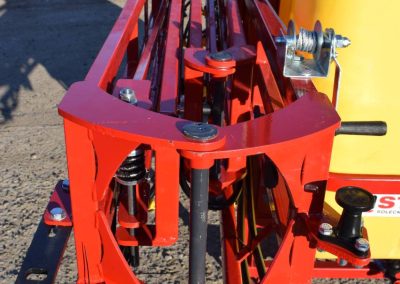 За точное и равномерное подачу жидкости отвечает высокопроизводительный мембрано-поршневой насос, а также жидкостная система, построенная на основе прочных ПВХ-шлангов. Ручное складывание и механический подъем шланга обеспечивают удобство в эксплуатации и быструю подготовку машины к работе в поле.