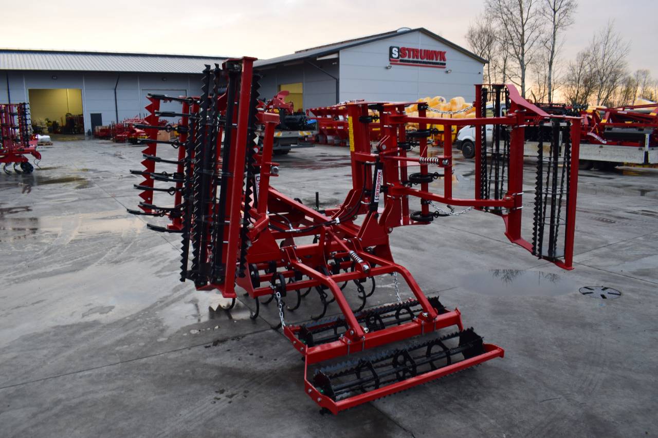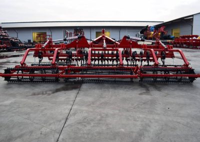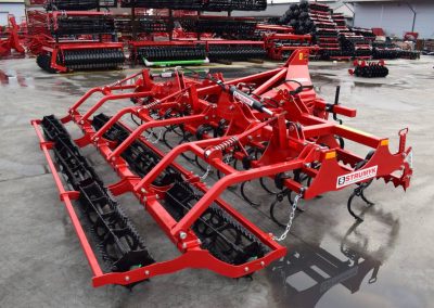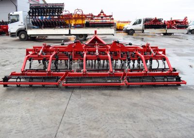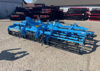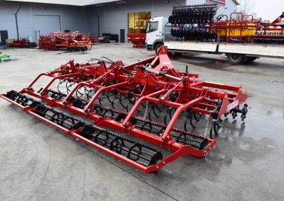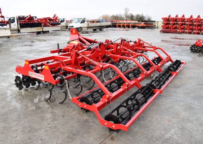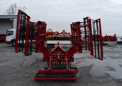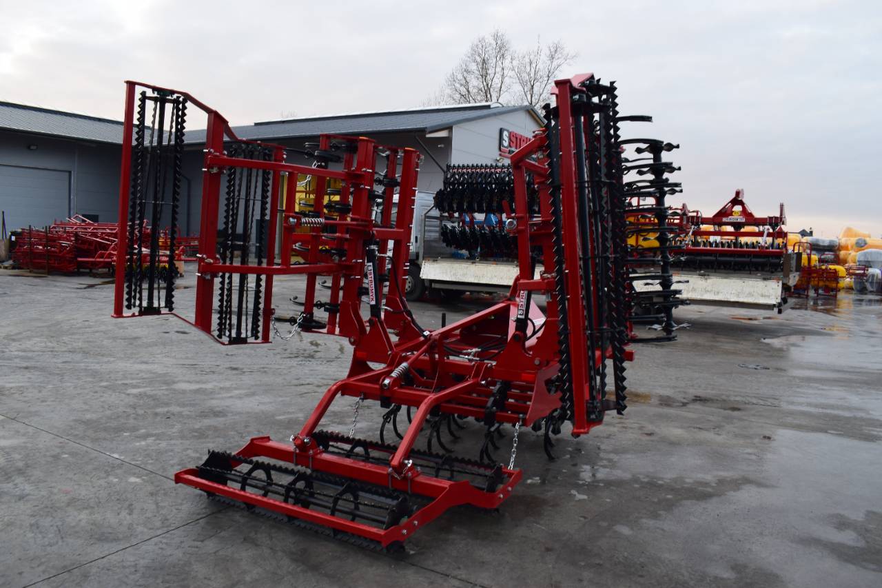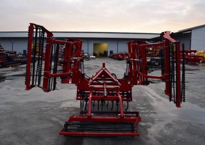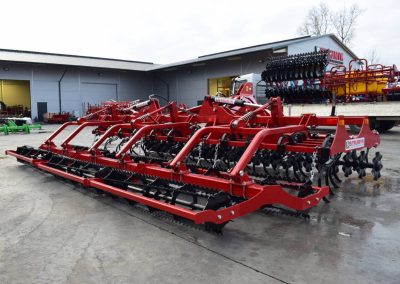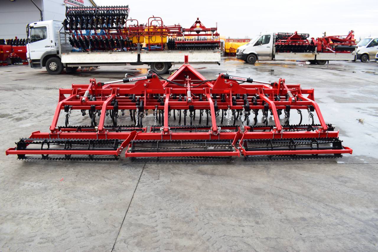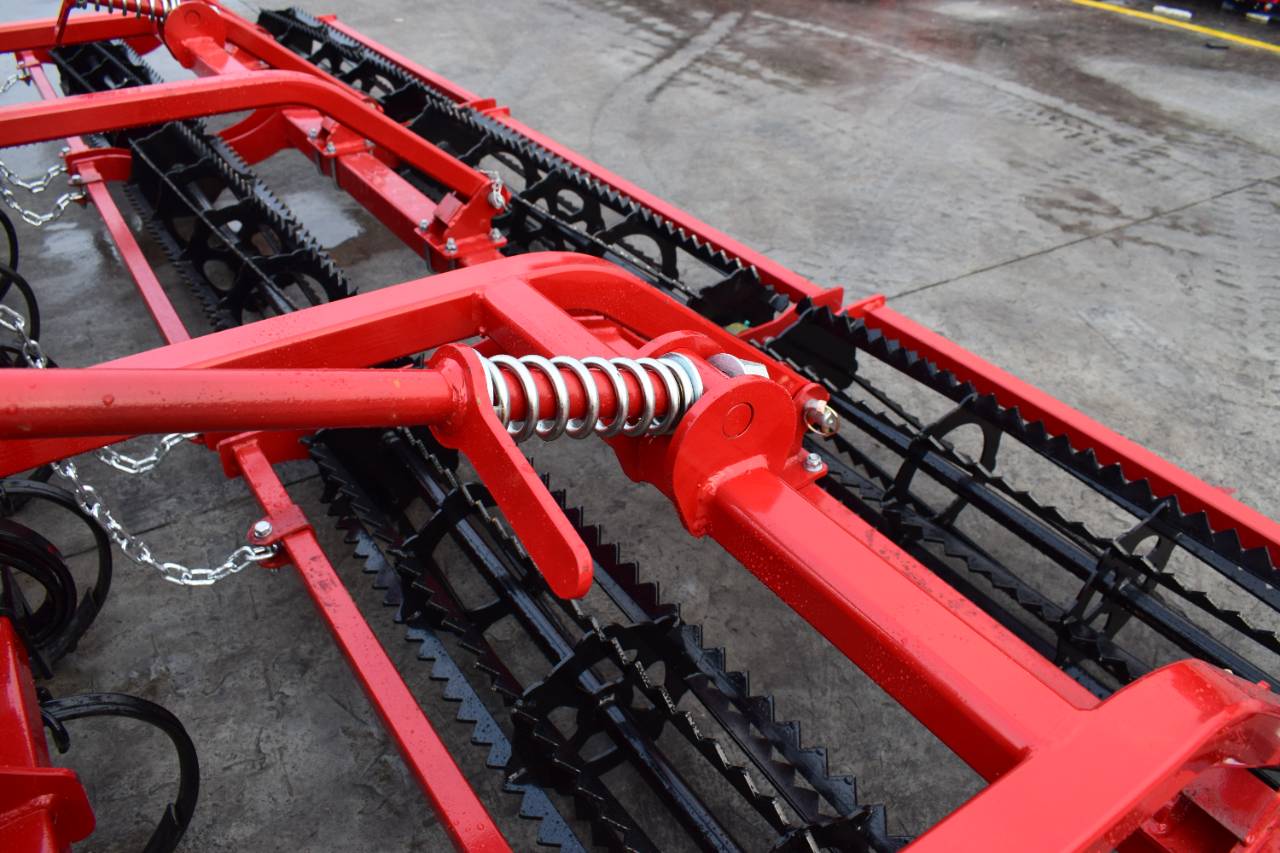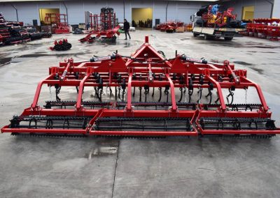 Гидравлически раскладывающаяся конструкция позволяет работать на больших рабочих ширинах, сохраняя при этом компактные транспортные габариты. Четыре ряда зубьев и система дробильно-уплотняющих валов обеспечивают интенсивное рыхление и выравнивание почвы за один проход.