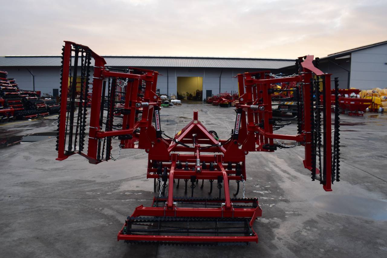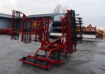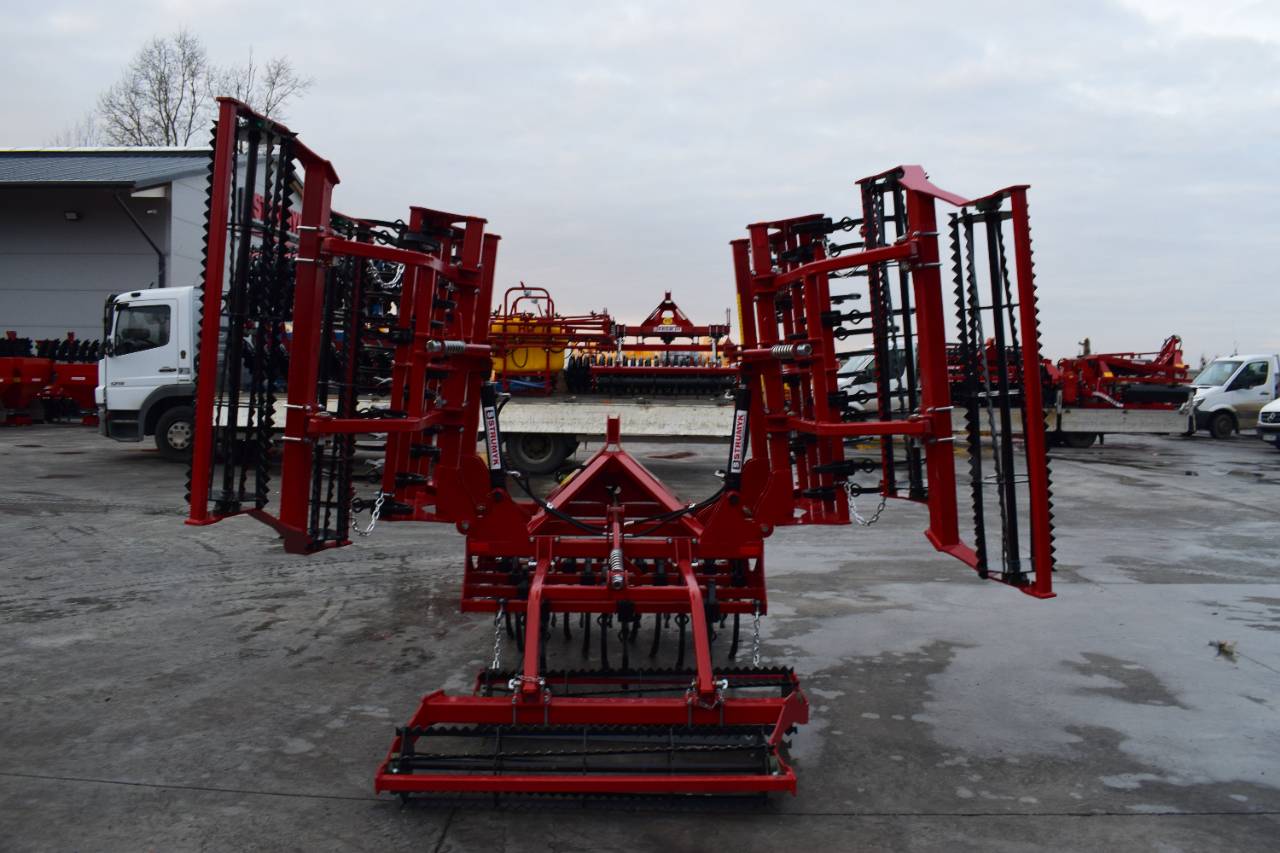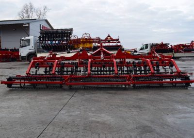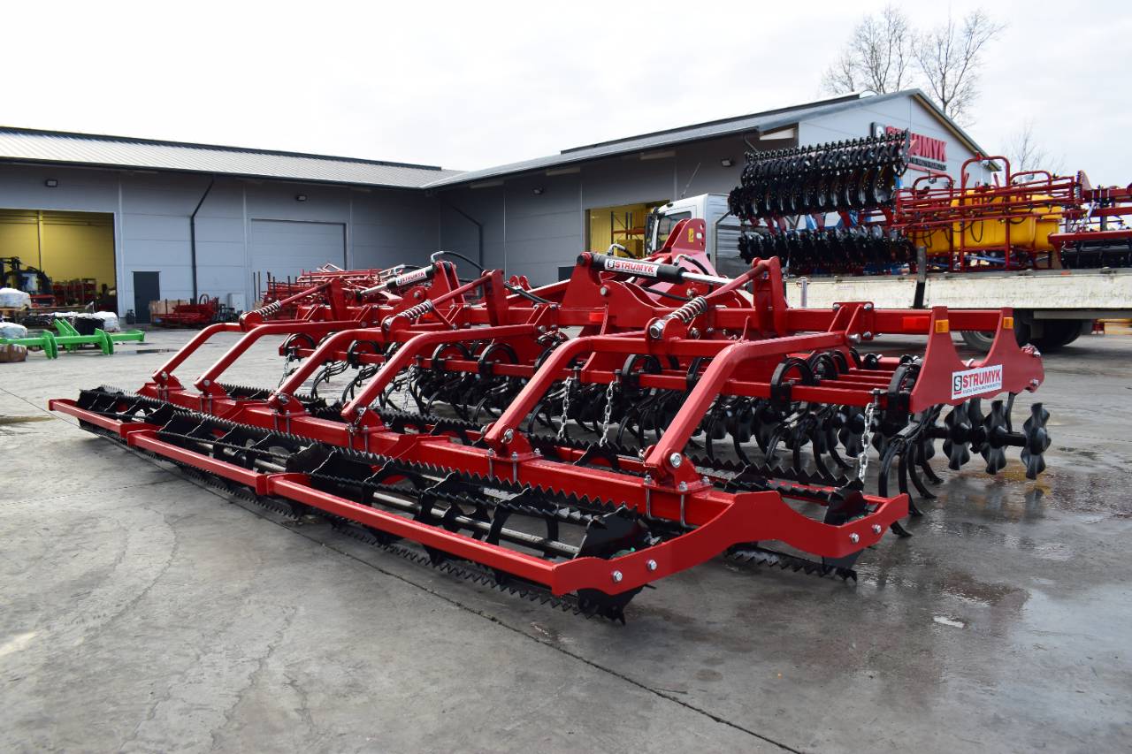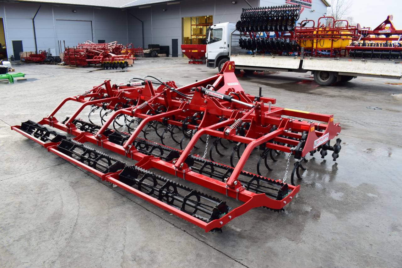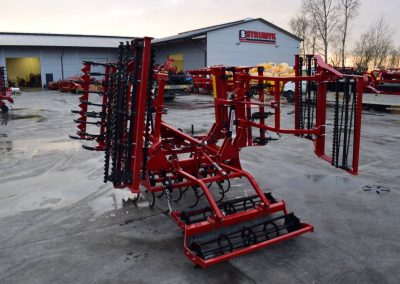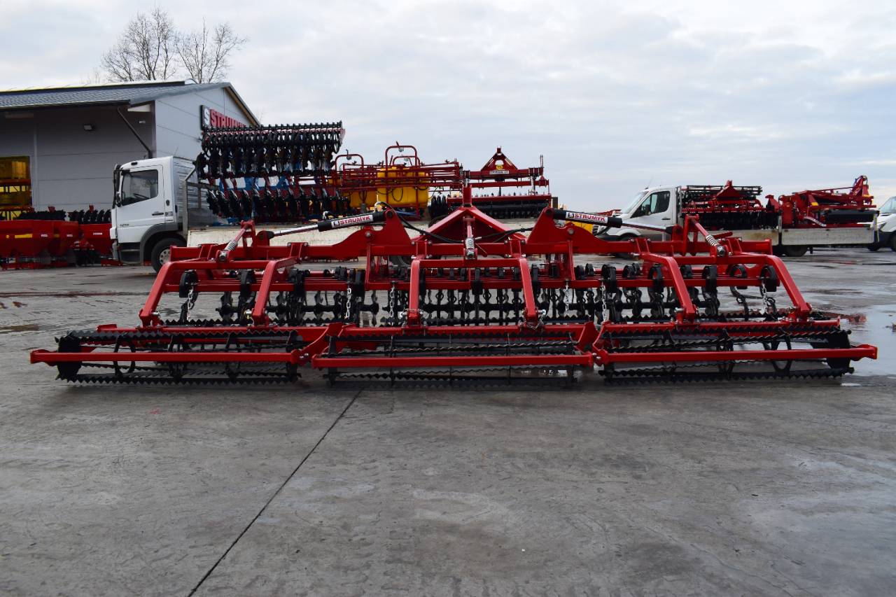 Гидравлически раскладывающаяся конструкция позволяет работать на больших рабочих ширинах, сохраняя при этом компактные транспортные габариты. Четыре ряда зубьев и система дробильно-уплотняющих валов обеспечивают интенсивное рыхление и выравнивание почвы за один проход.
