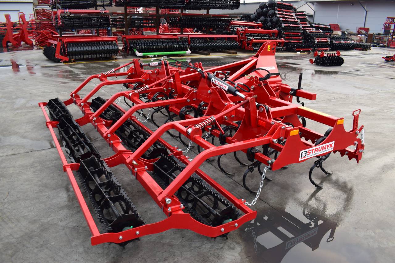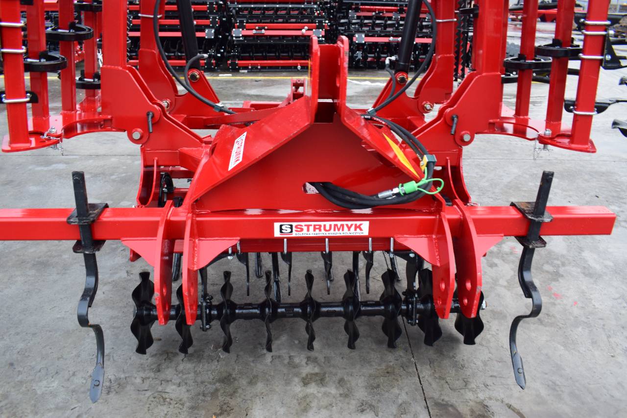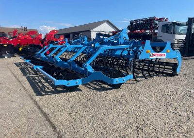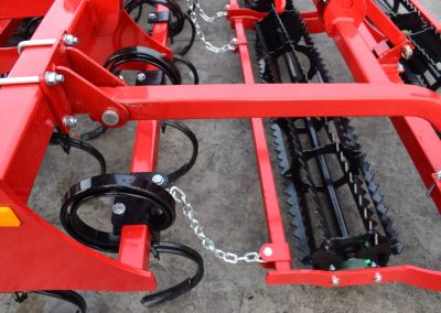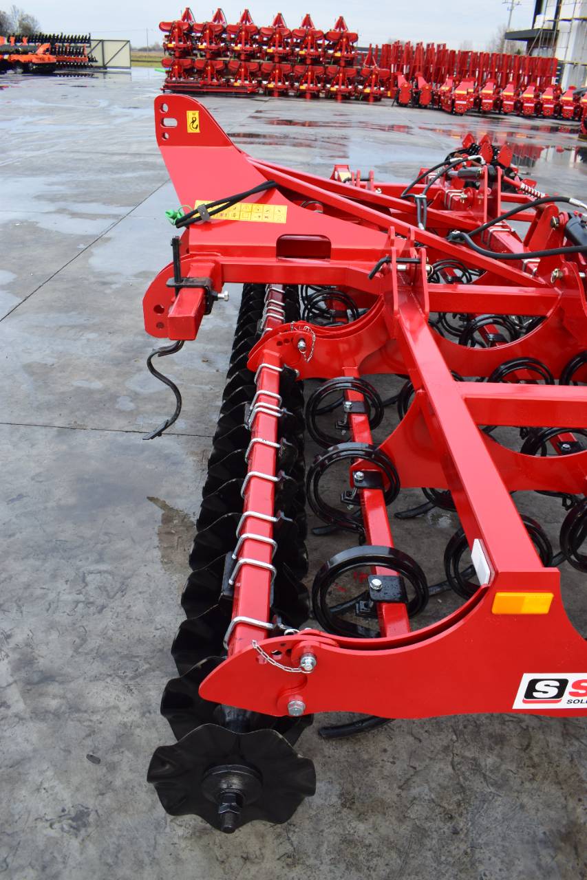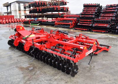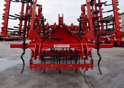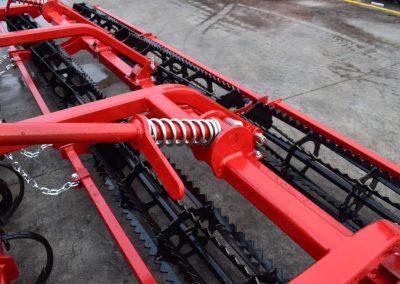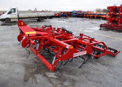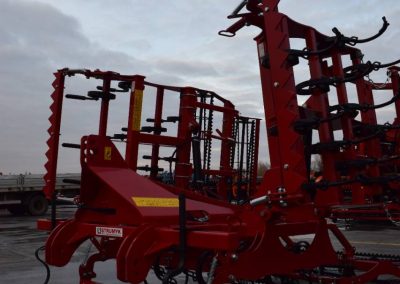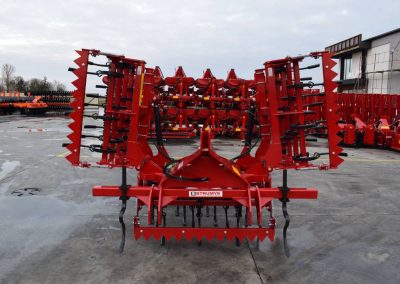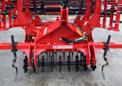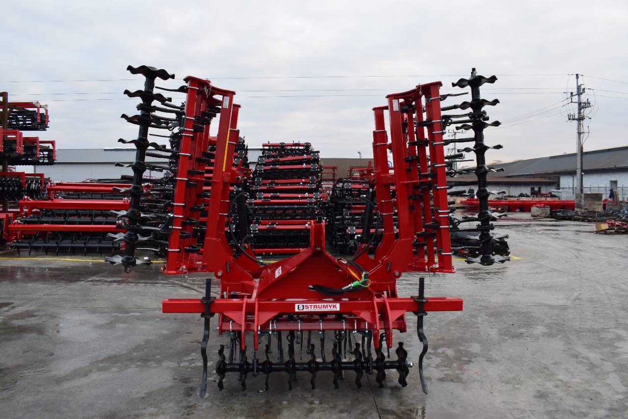 Гидравлически раскладывающаяся конструкция позволяет работать на больших рабочих ширинах, сохраняя при этом компактные транспортные габариты. Четыре ряда зубьев и система дробильно-уплотняющих валов обеспечивают интенсивное рыхление и выравнивание почвы за один проход.