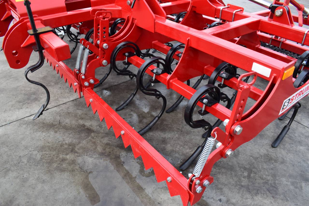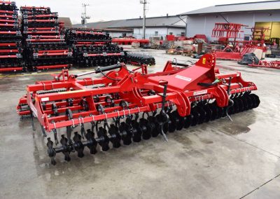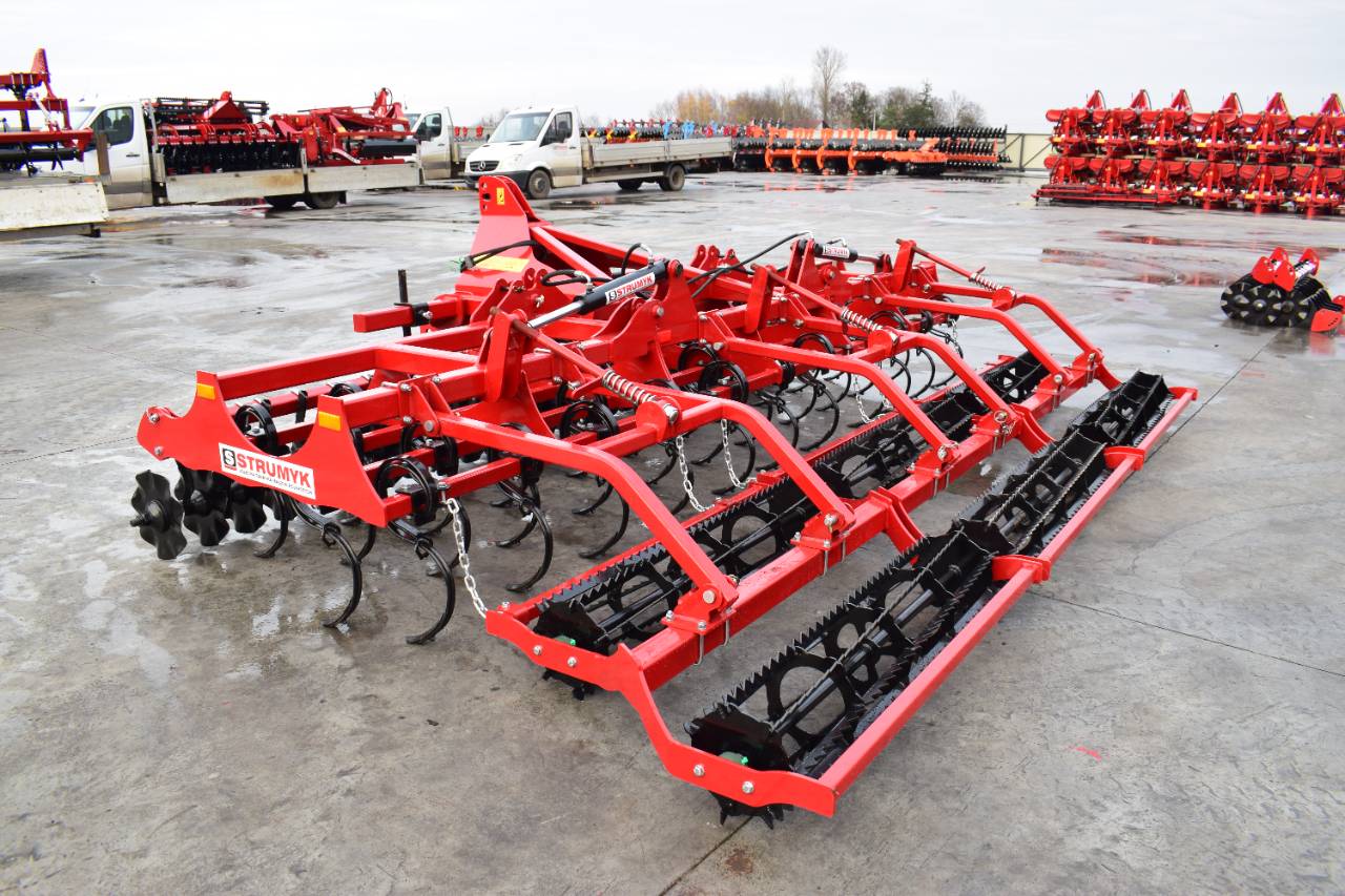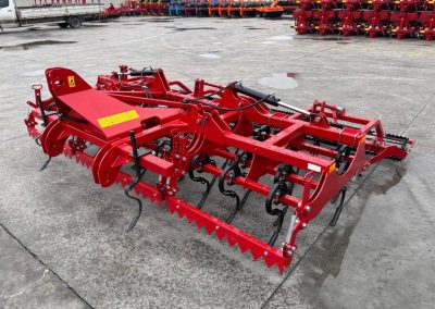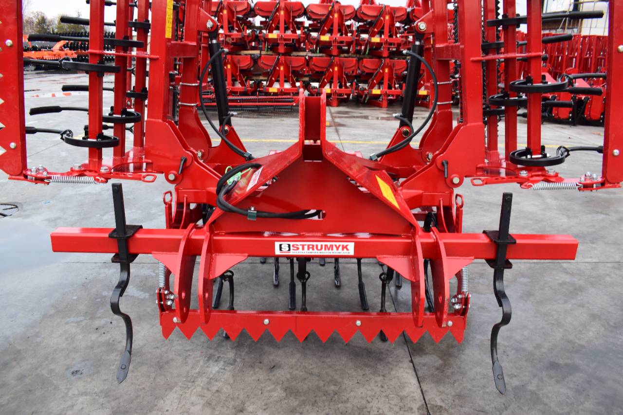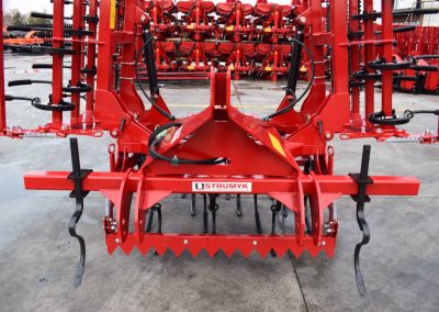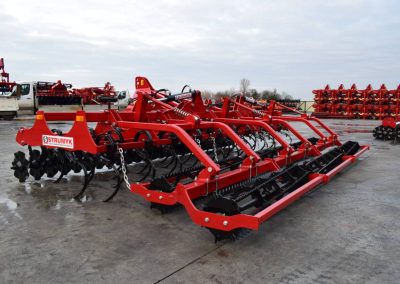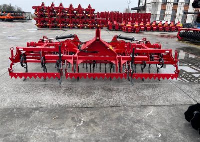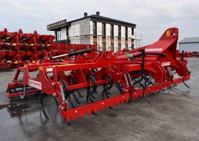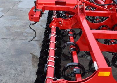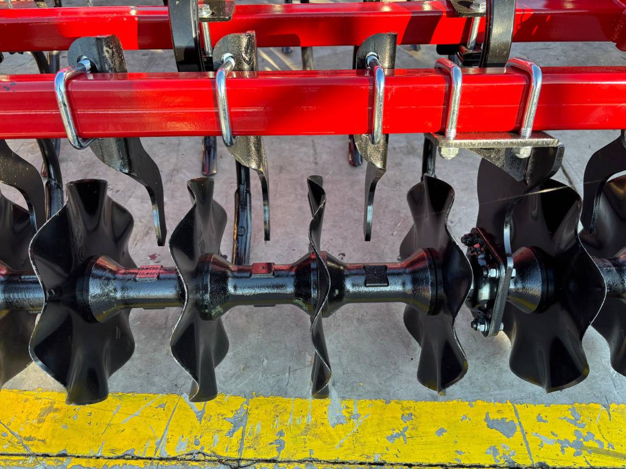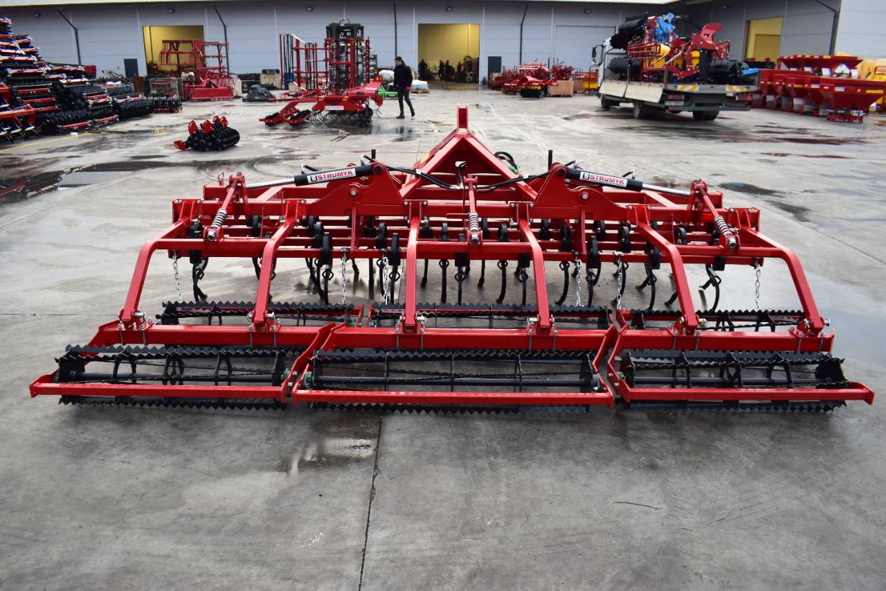 Гидравлически раскладывающаяся конструкция позволяет работать на больших рабочих ширинах, сохраняя при этом компактные транспортные габариты. Четыре ряда зубьев и система дробильно-уплотняющих валов обеспечивают интенсивное рыхление и выравнивание почвы за один проход.