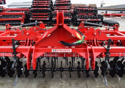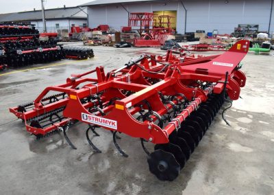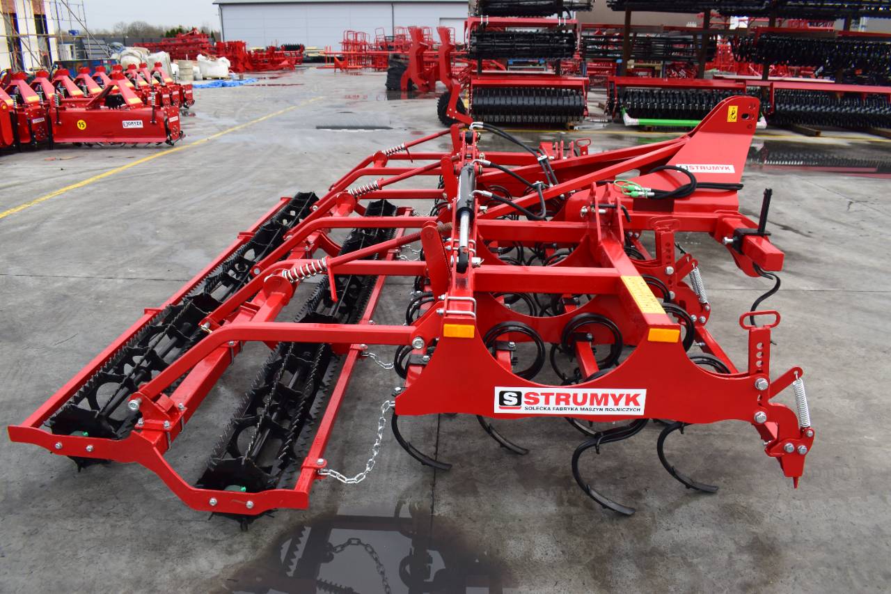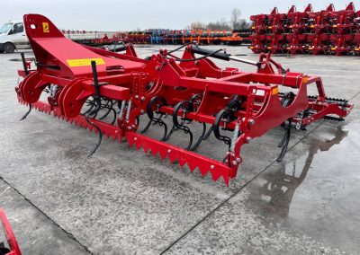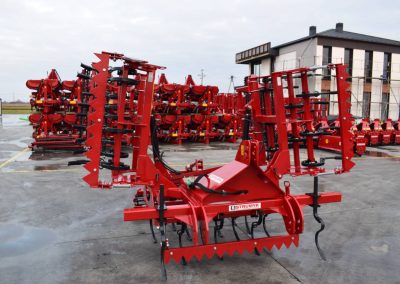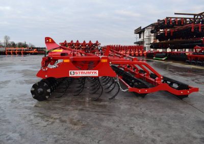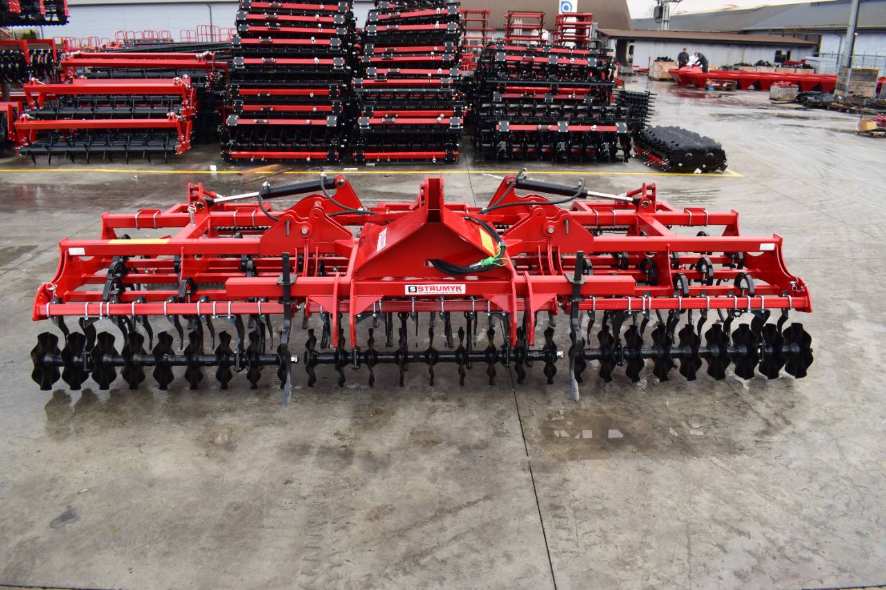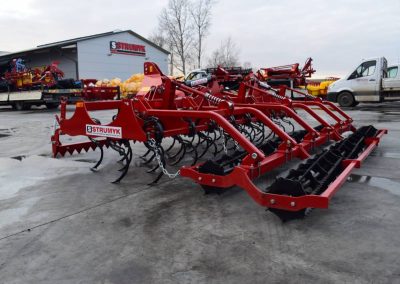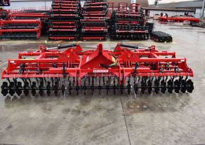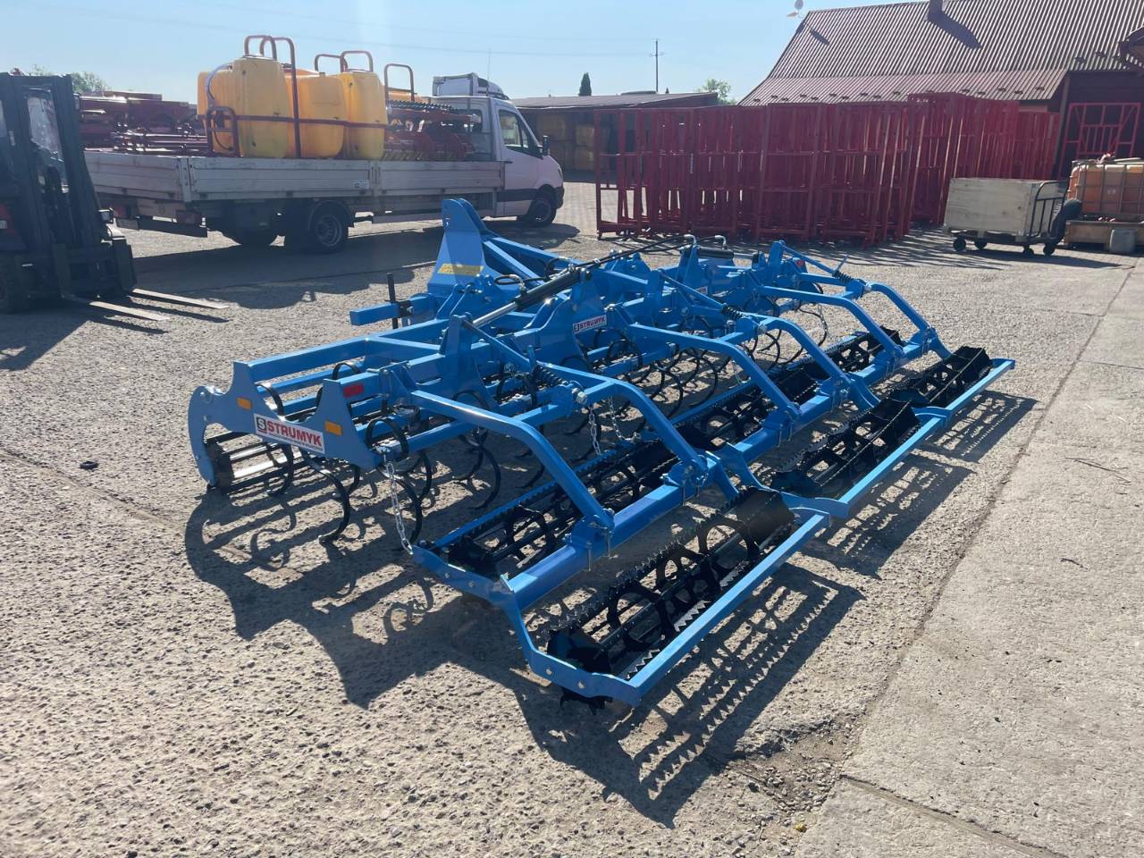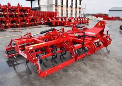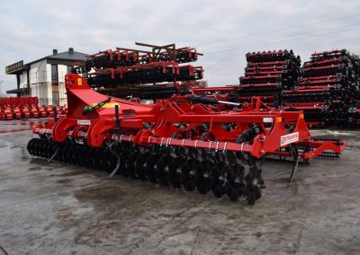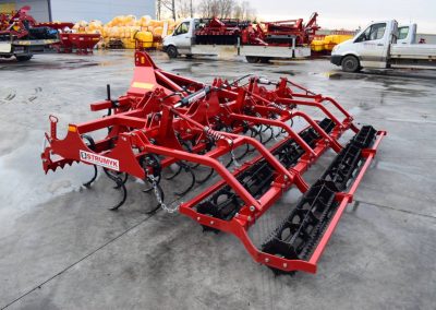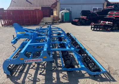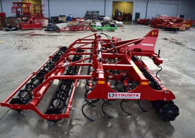 Гидравлически раскладывающаяся конструкция позволяет работать на больших рабочих ширинах, сохраняя при этом компактные транспортные габариты. Четыре ряда зубьев и система дробильно-уплотняющих валов обеспечивают интенсивное рыхление и выравнивание почвы за один проход.