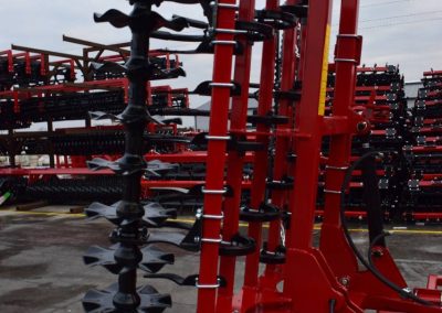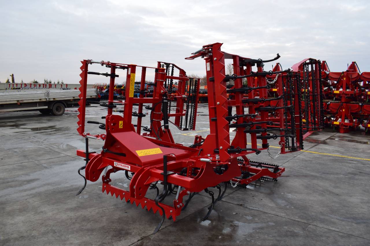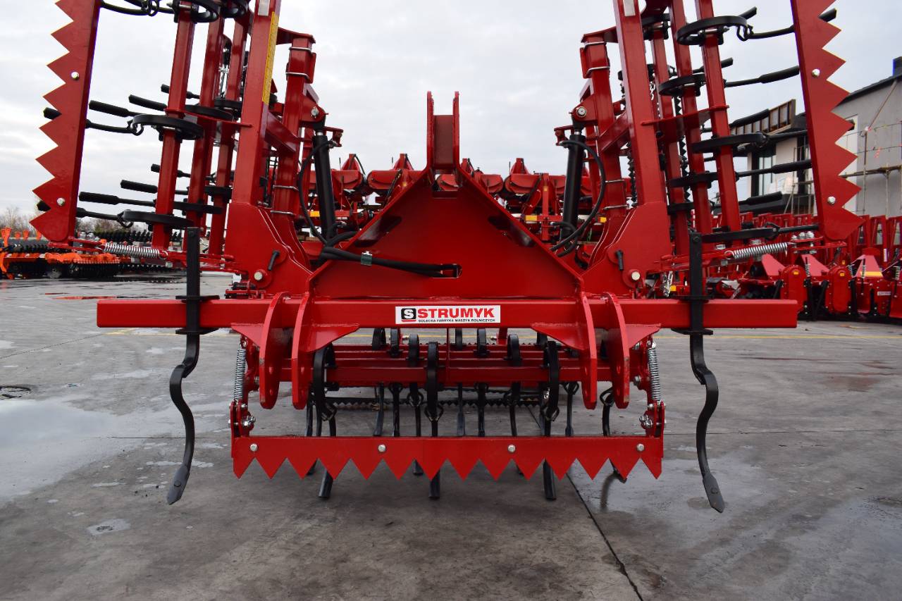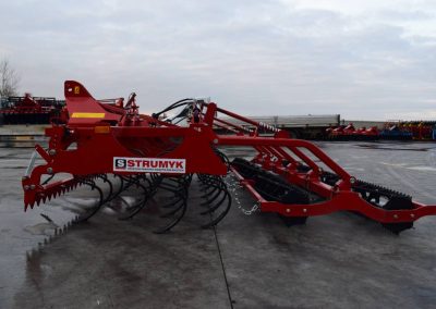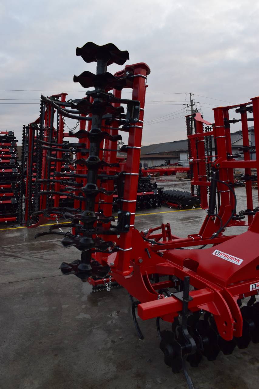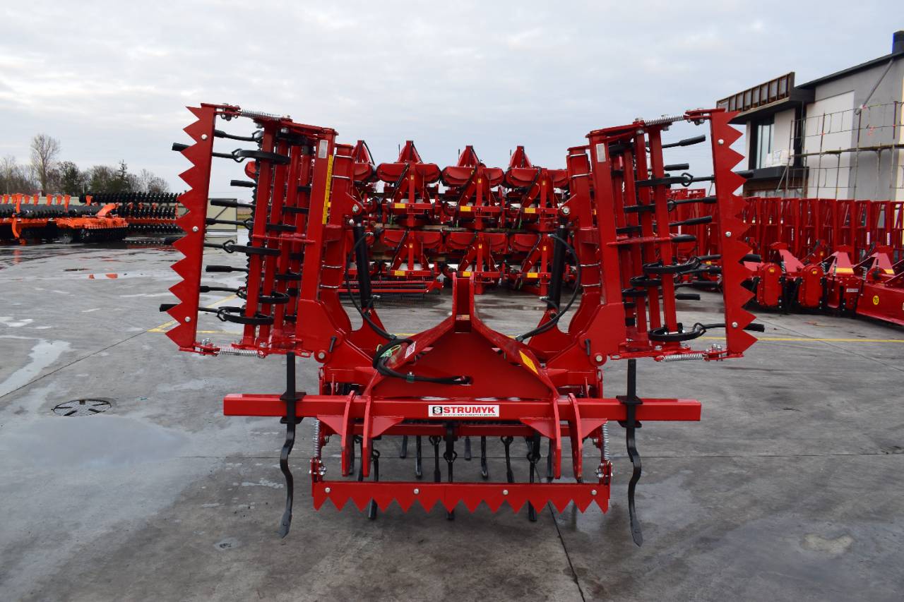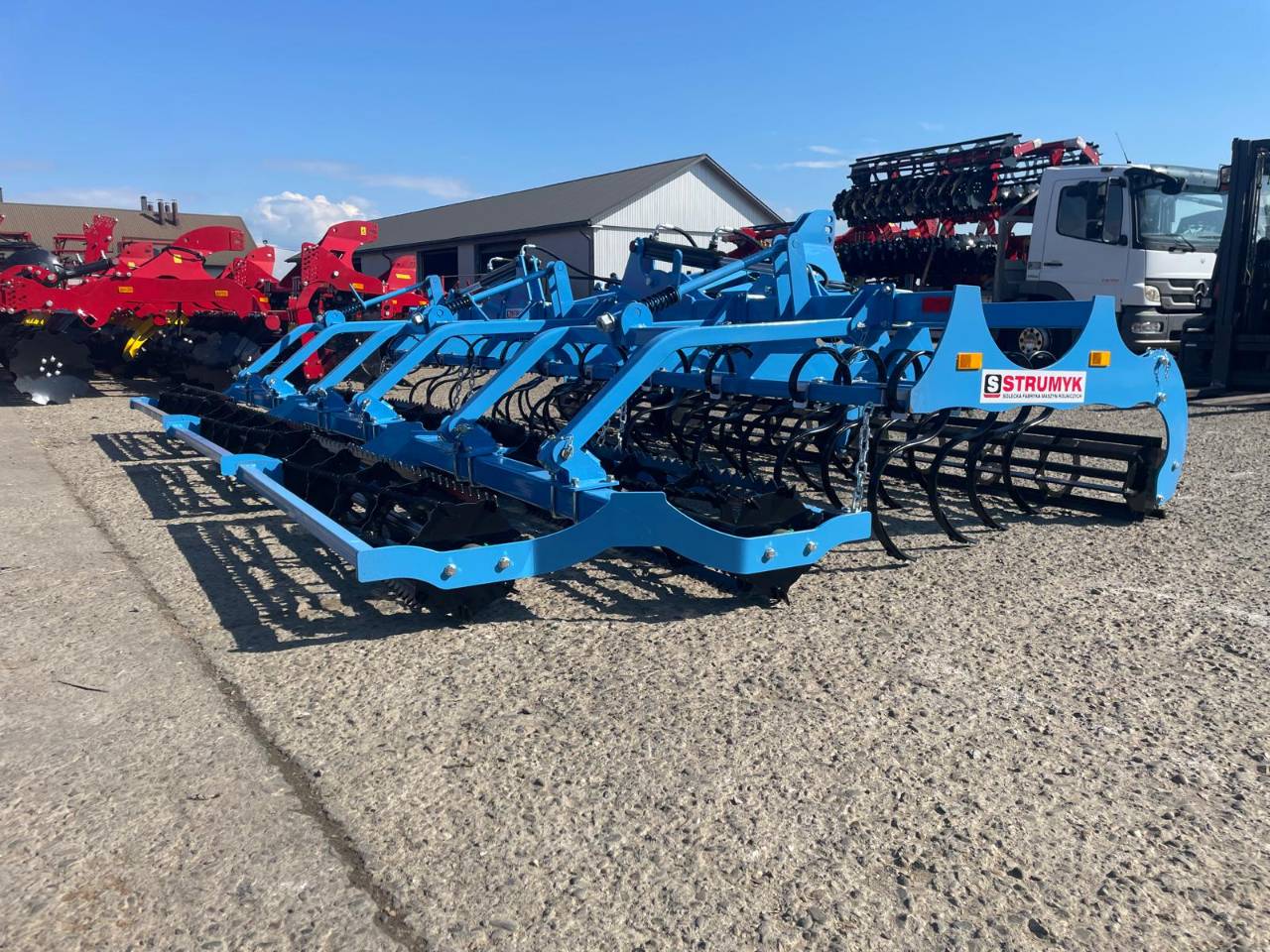 Гидравлически раскладывающаяся конструкция позволяет работать на больших рабочих ширинах, сохраняя при этом компактные транспортные габариты. Четыре ряда зубьев и система дробильно-уплотняющих валов обеспечивают интенсивное рыхление и выравнивание почвы за один проход.