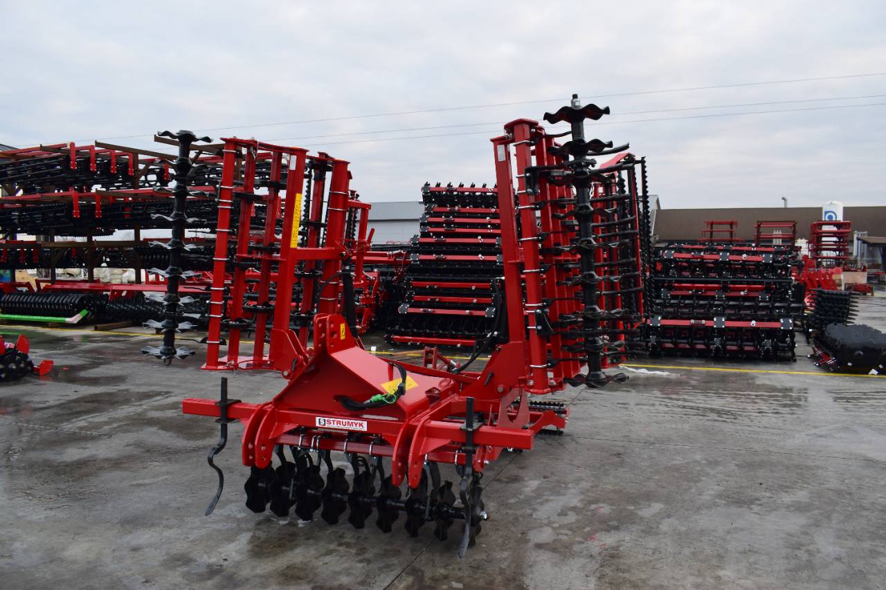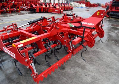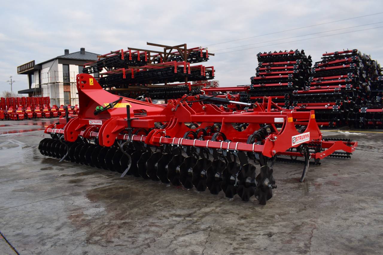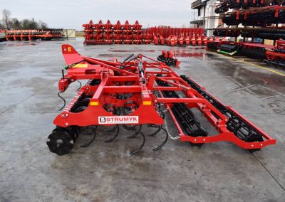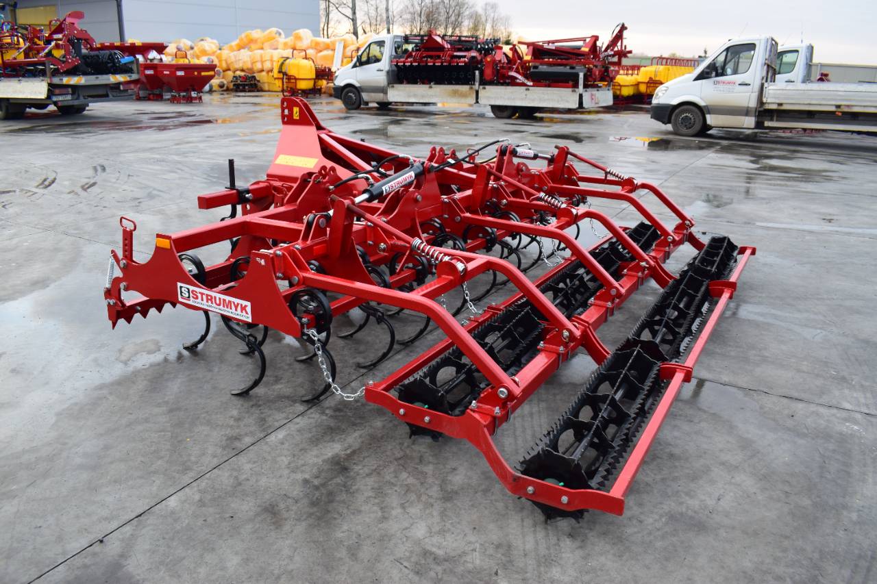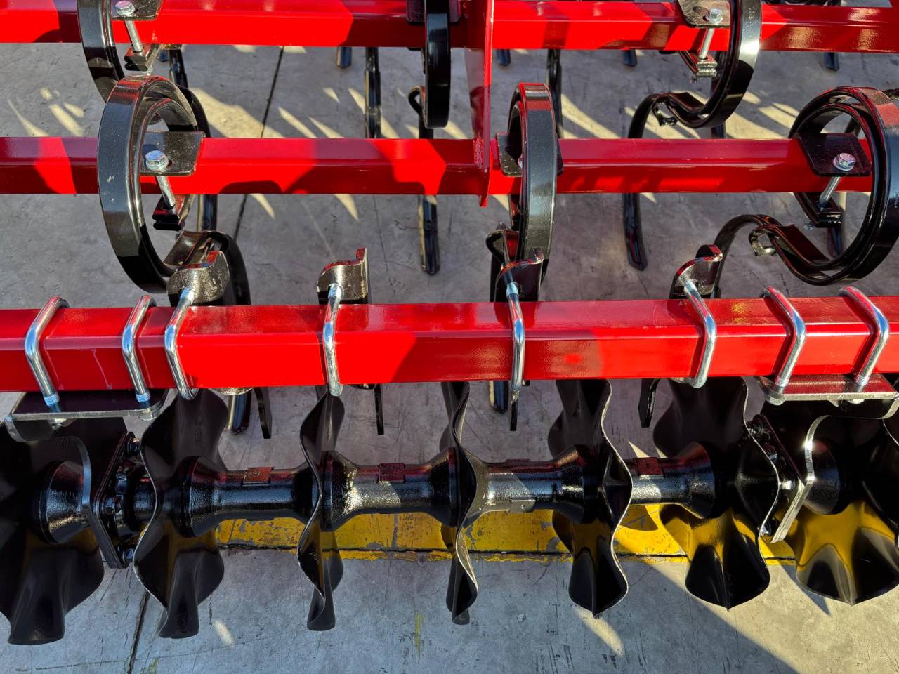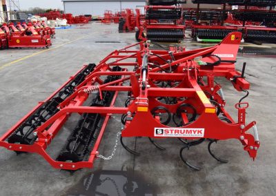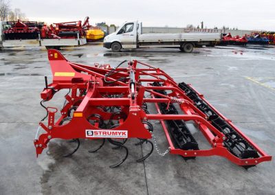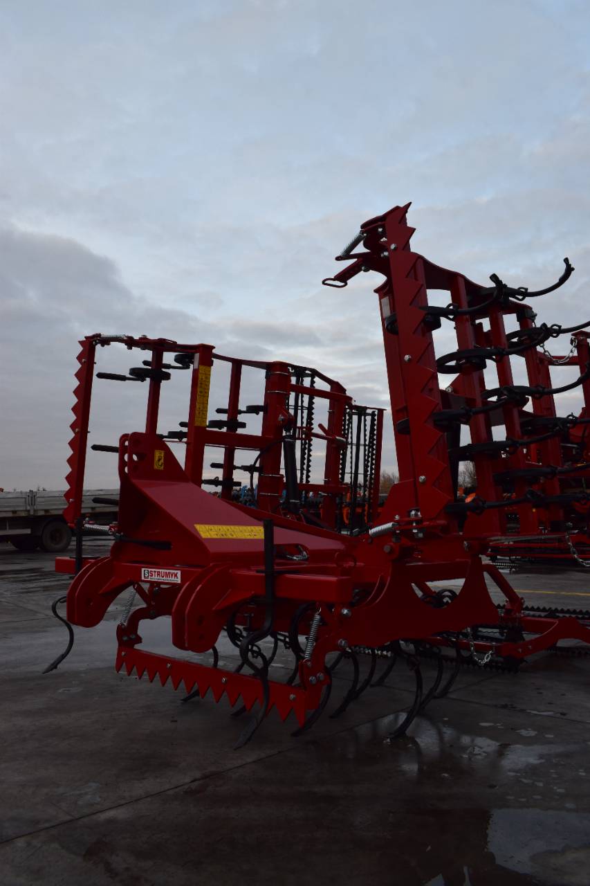 Гидравлически раскладывающаяся конструкция позволяет работать на больших рабочих ширинах, сохраняя при этом компактные транспортные габариты. Четыре ряда зубьев и система дробильно-уплотняющих валов обеспечивают интенсивное рыхление и выравнивание почвы за один проход.