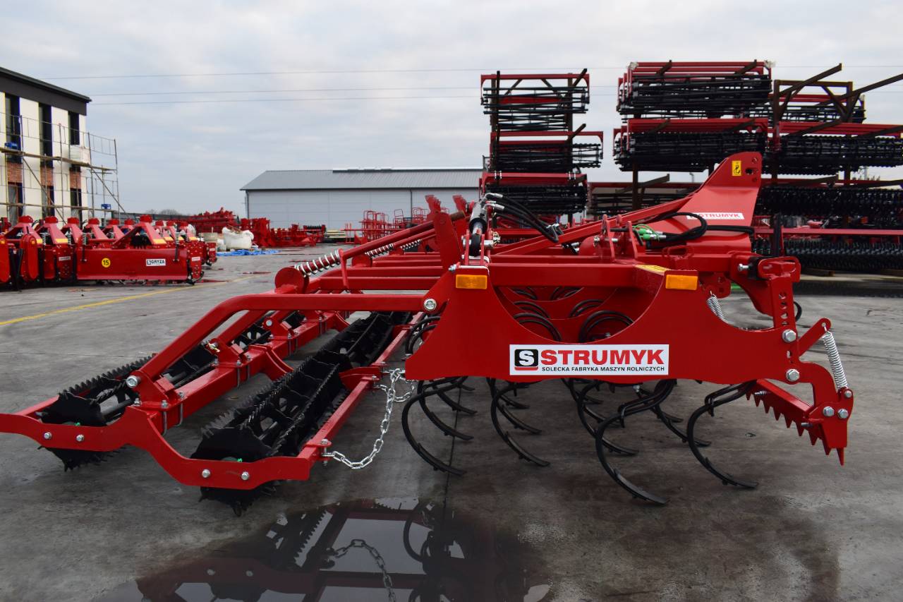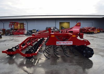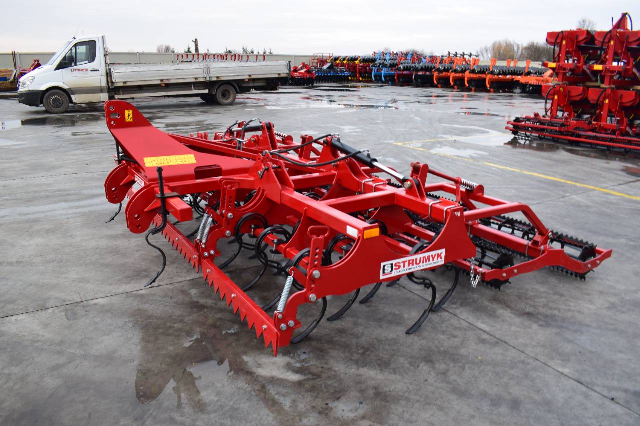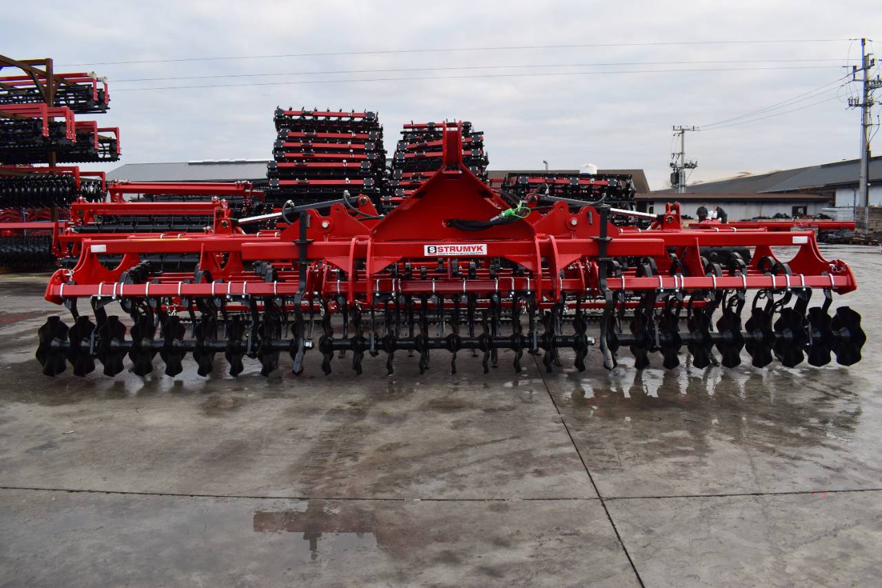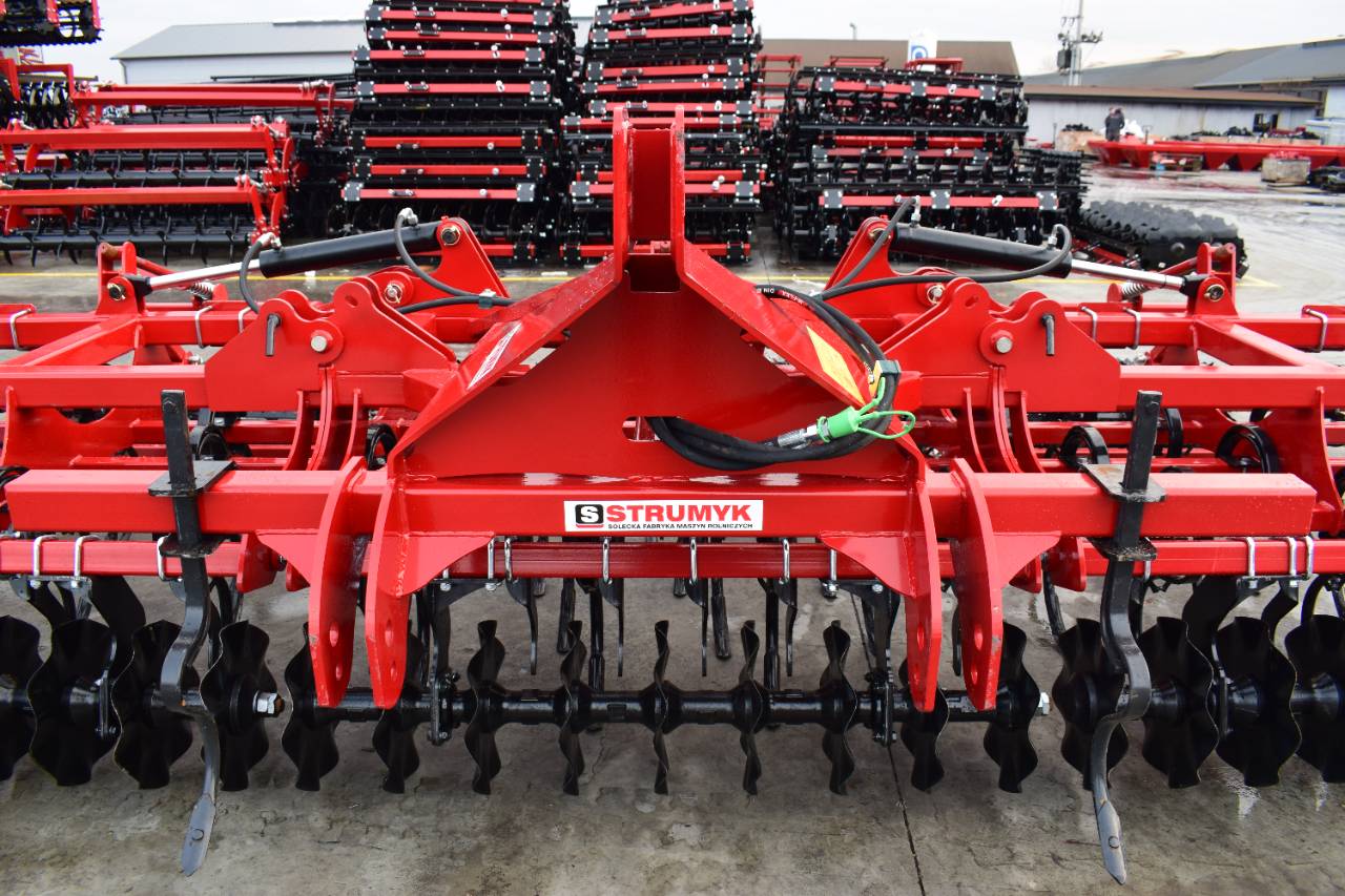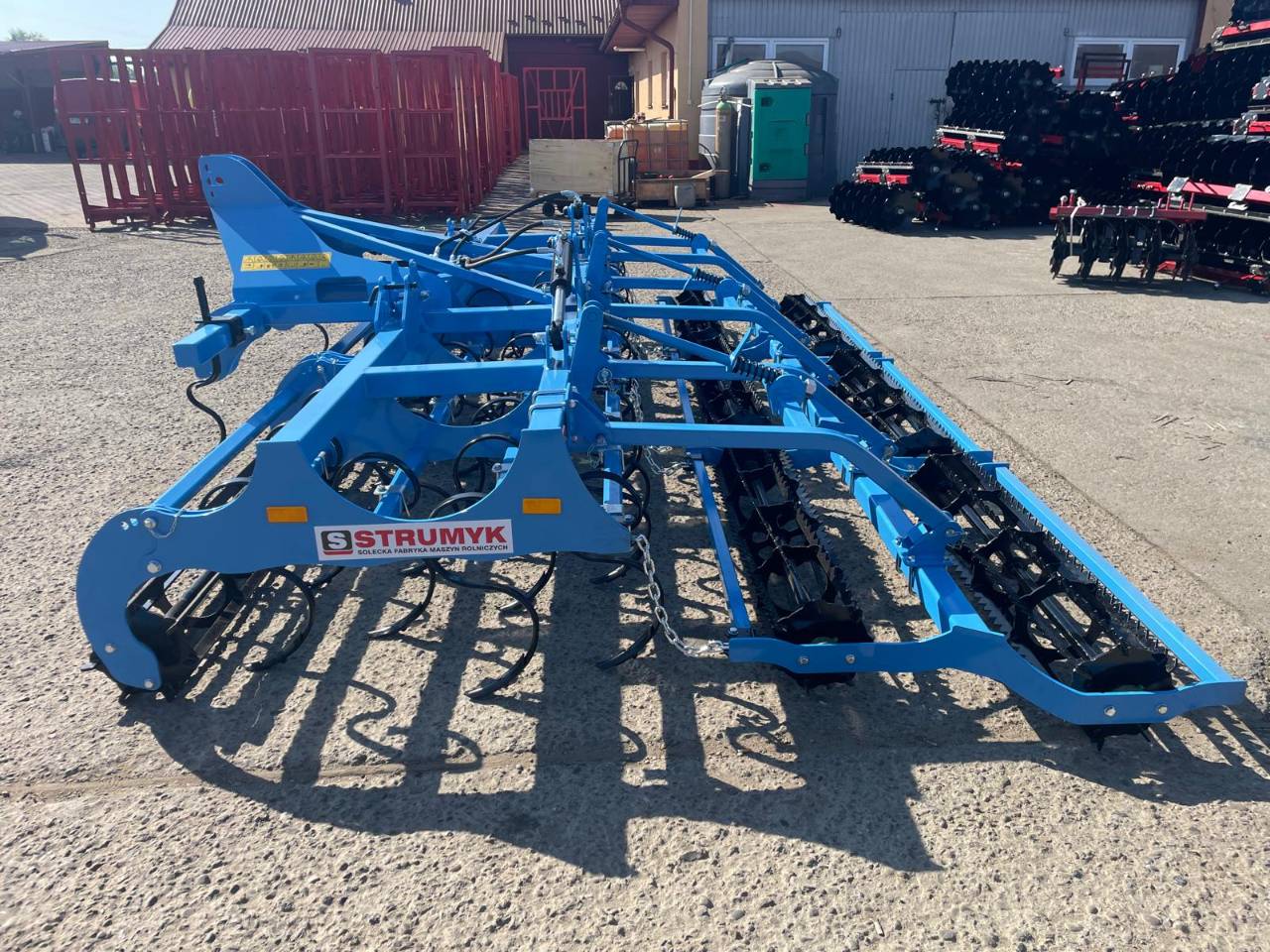 Гидравлически раскладывающаяся конструкция позволяет работать на больших рабочих ширинах, сохраняя при этом компактные транспортные габариты. Четыре ряда зубьев и система дробильно-уплотняющих валов обеспечивают интенсивное рыхление и выравнивание почвы за один проход.