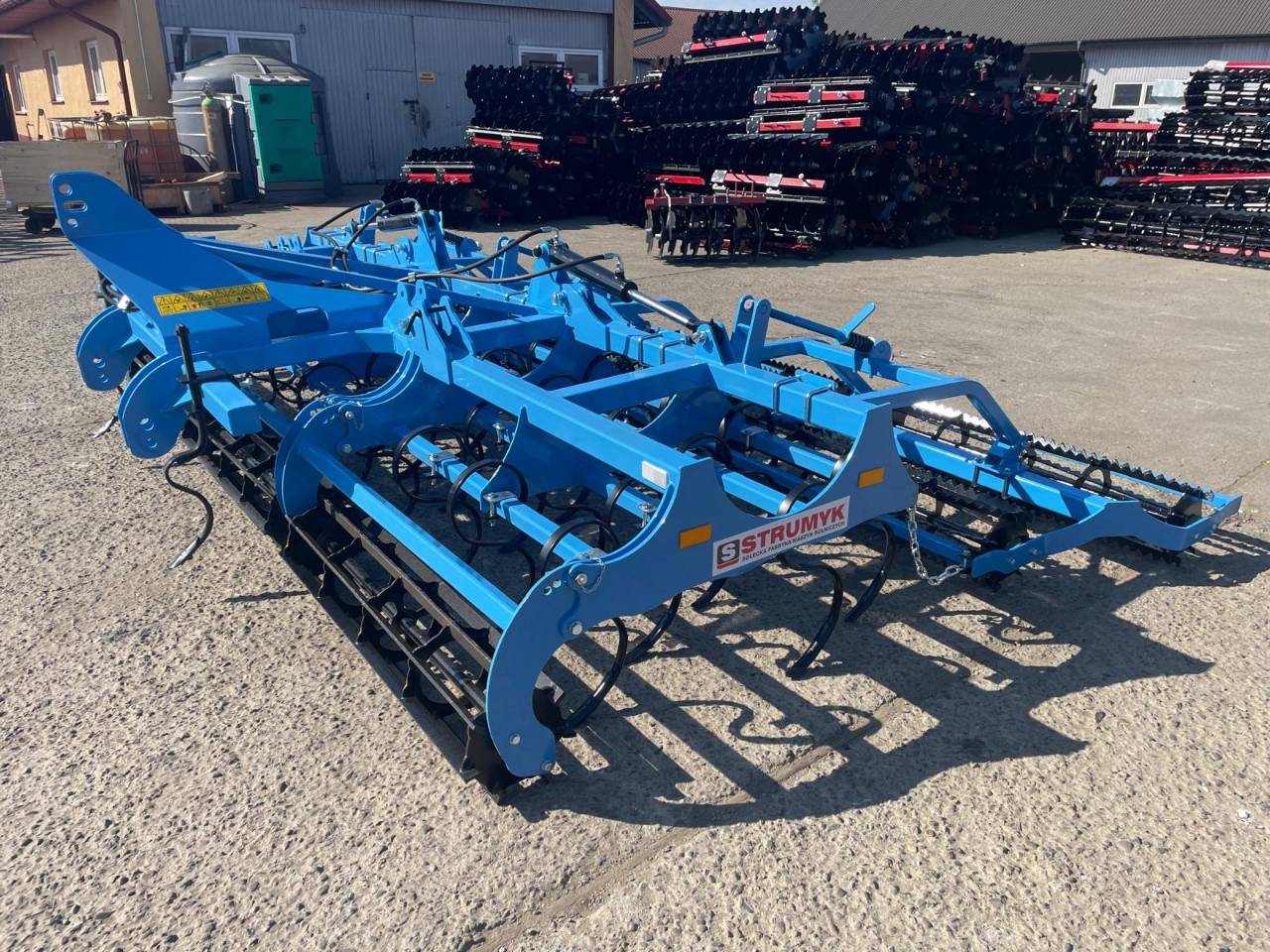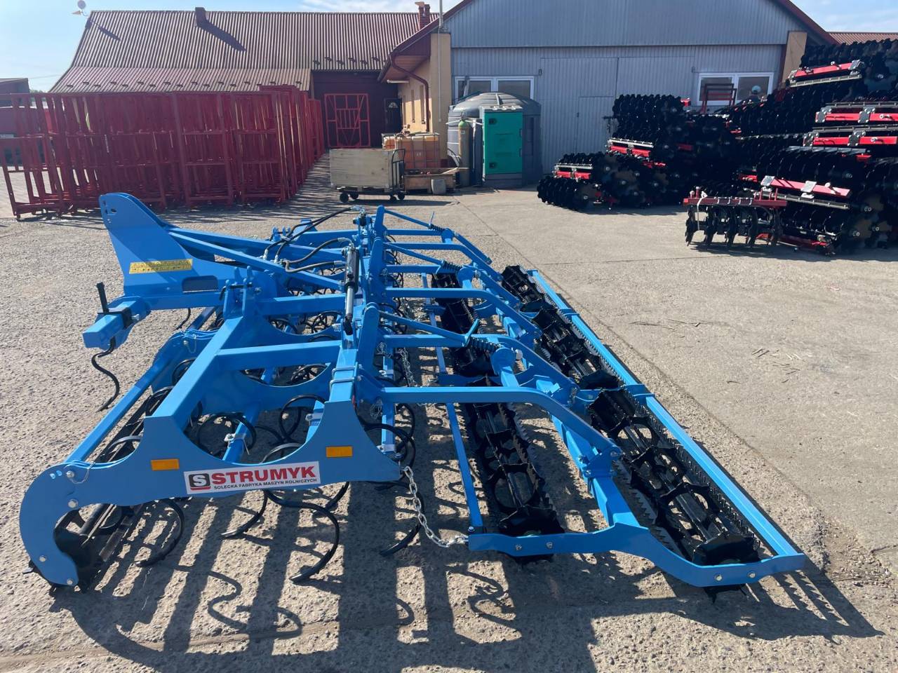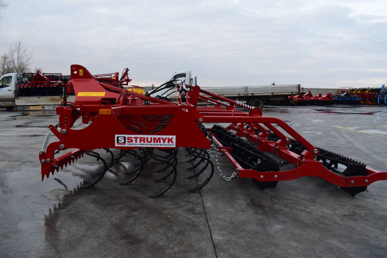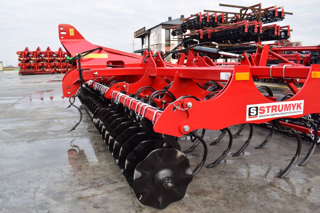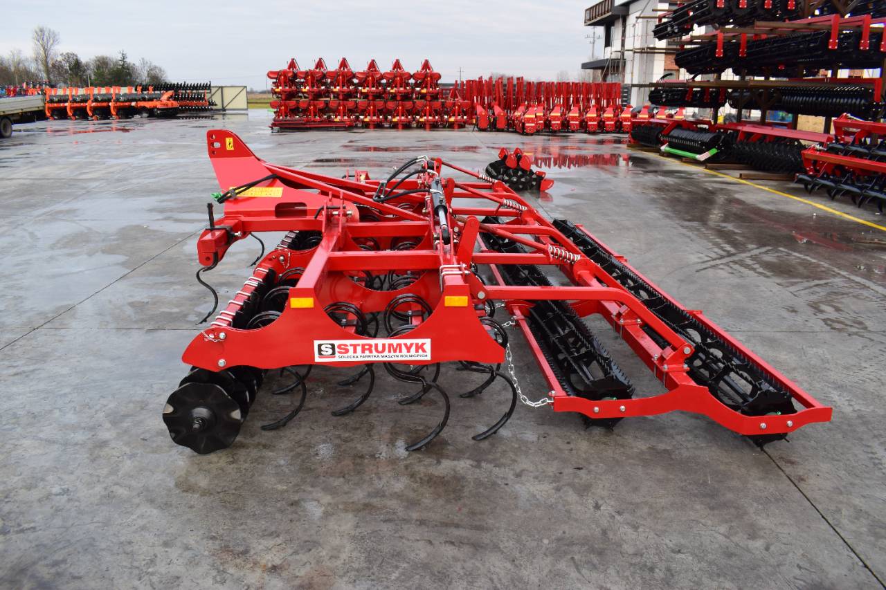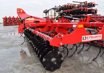 Гидравлически раскладывающаяся конструкция позволяет работать на больших рабочих ширинах, сохраняя при этом компактные транспортные габариты. Четыре ряда зубьев и система дробильно-уплотняющих валов обеспечивают интенсивное рыхление и выравнивание почвы за один проход.